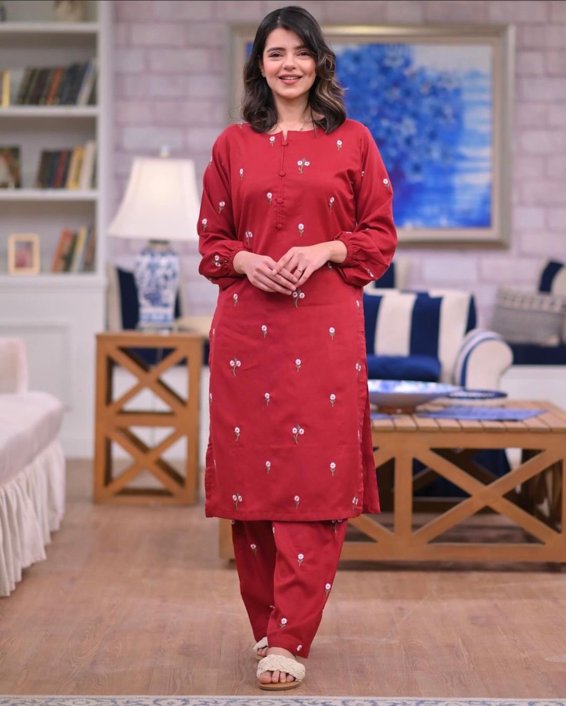 Soft Cotton Lawn Front Back & Sleeves All Over Embroidery Shirt & Trouser 2 Pcs Dress 👗.Â