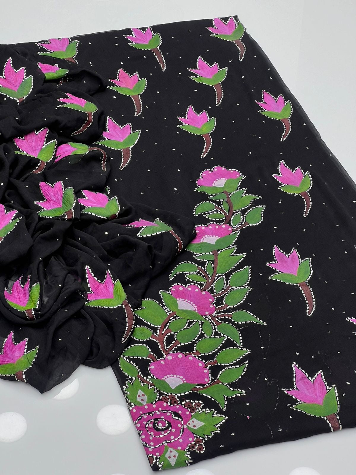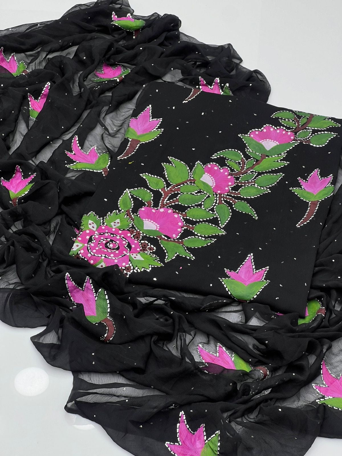 Handmade paint mukesh work on soft crinkle chiffon full shirt jall with booti work Dupata 2pc dress 👗Â