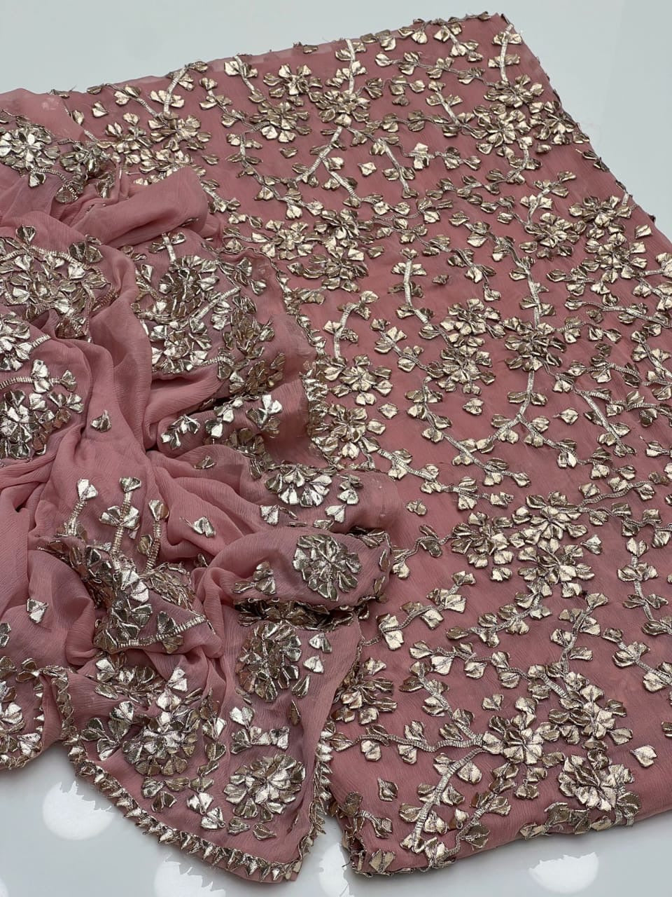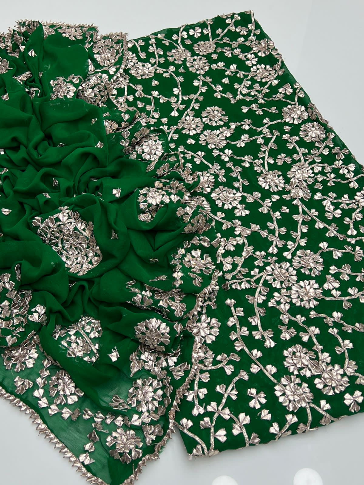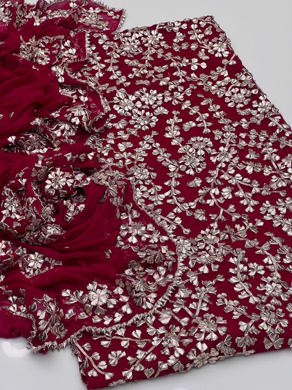 Handmade Lcd gotta work on soft krinkle shifoon full shirt jall with 4 sided border inside bunches dupatta 2pc dress