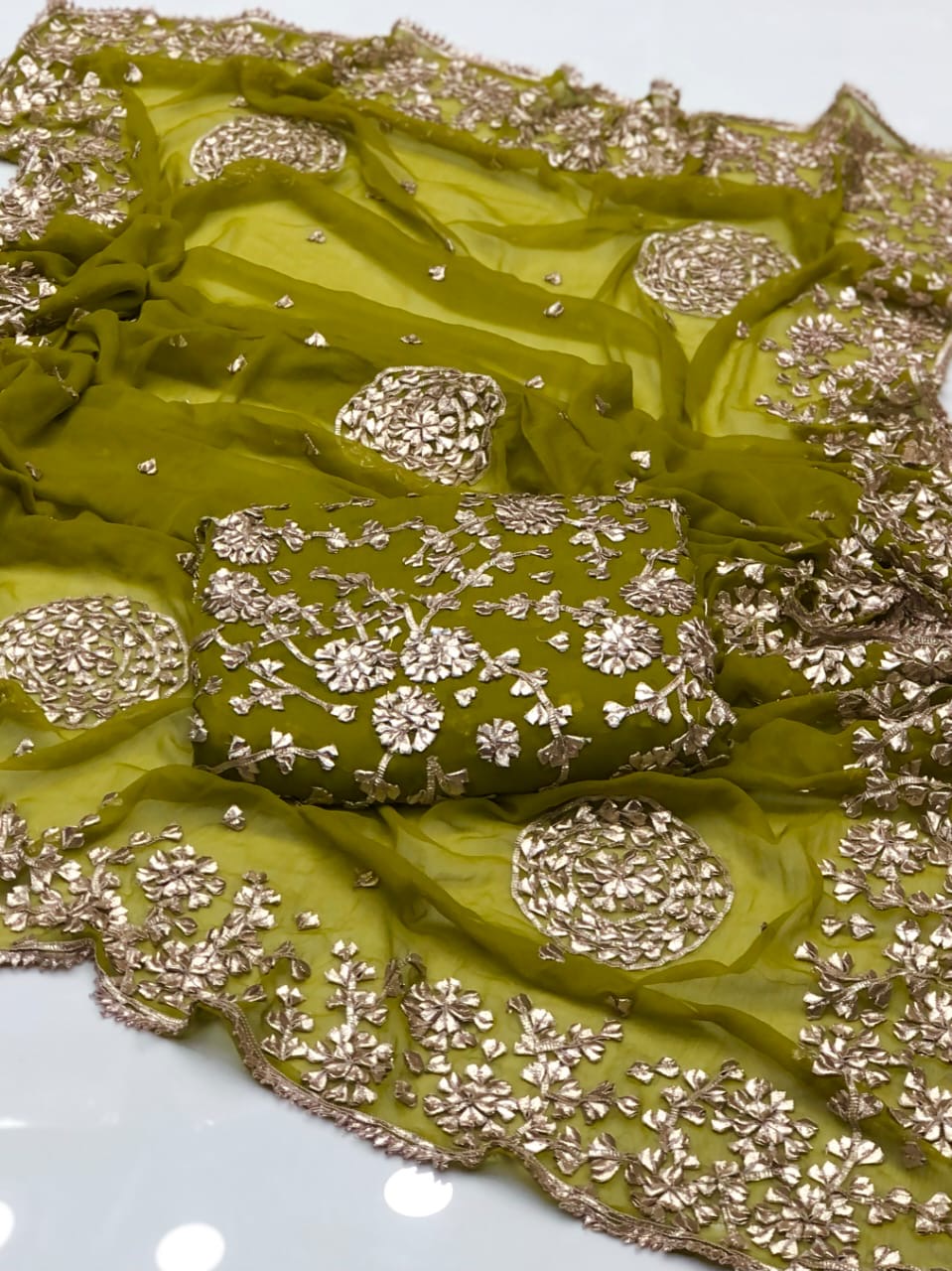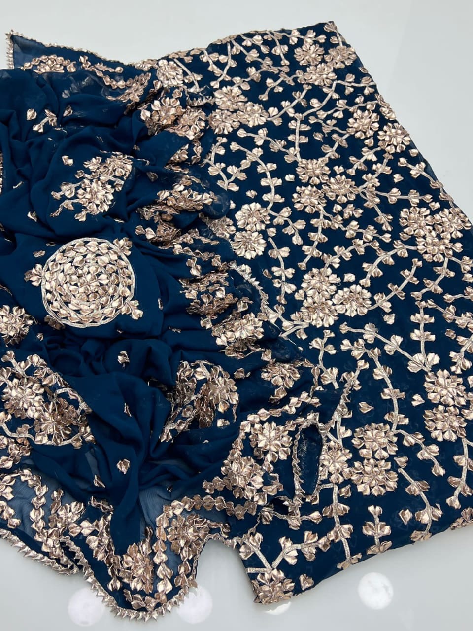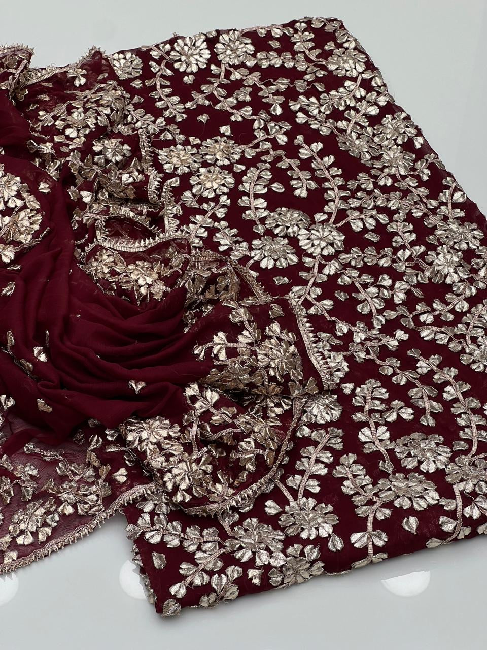 Handmade Lcd gotta work on soft krinkle shifoon full shirt jall with 4 sided border inside bunches dupatta 2pc dress