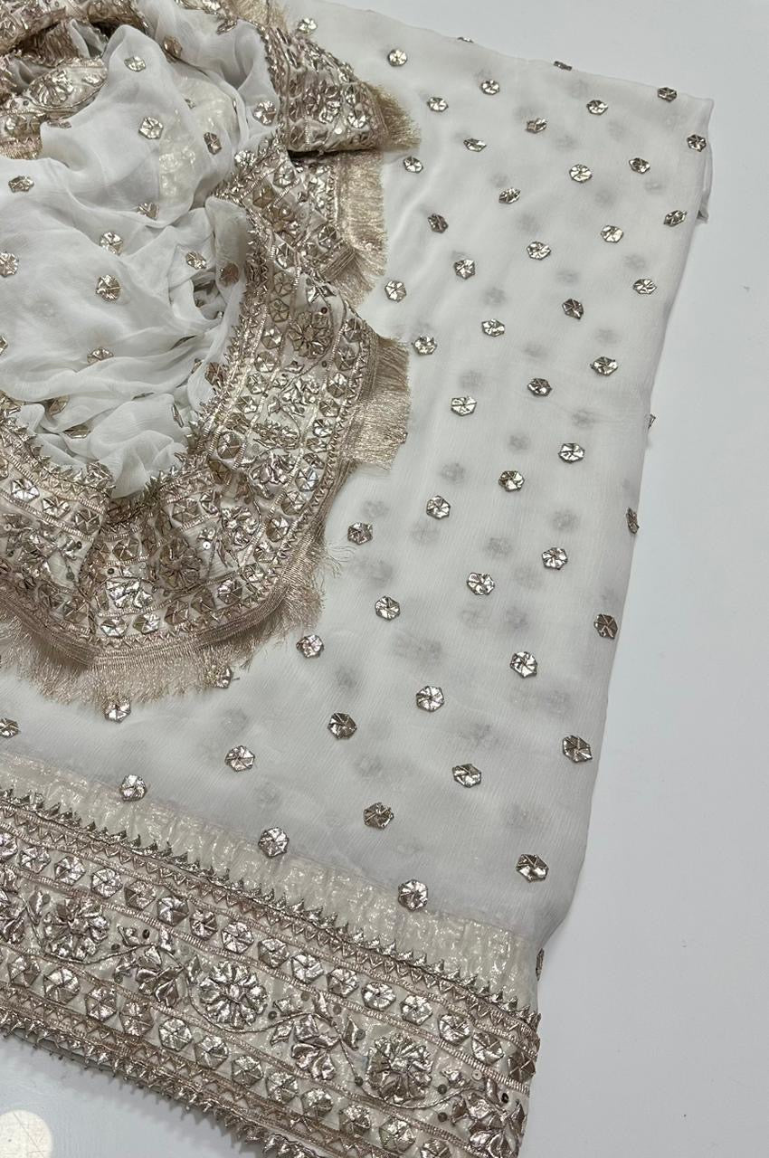 Handmade Lcd Gotta Work On Pure Bamber Shifoon Daman Style Shirt With 4 Sided Border Dupatta 2pc Suit…