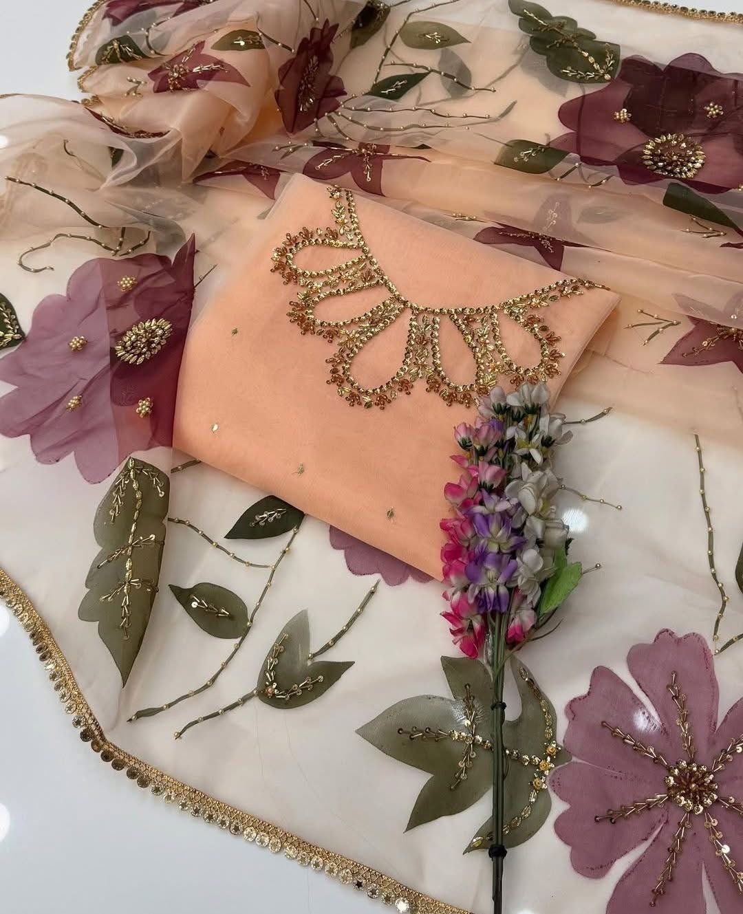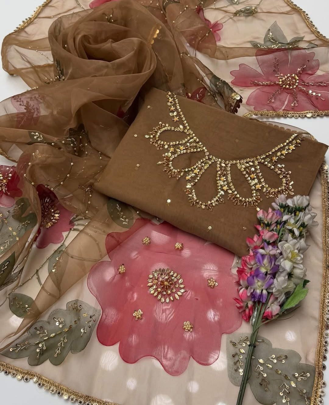 One of the beautiful & Stunning handwork Stones And beads work organza shirt