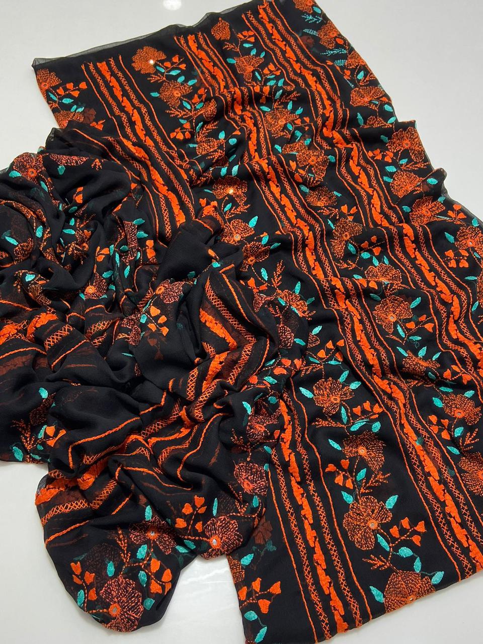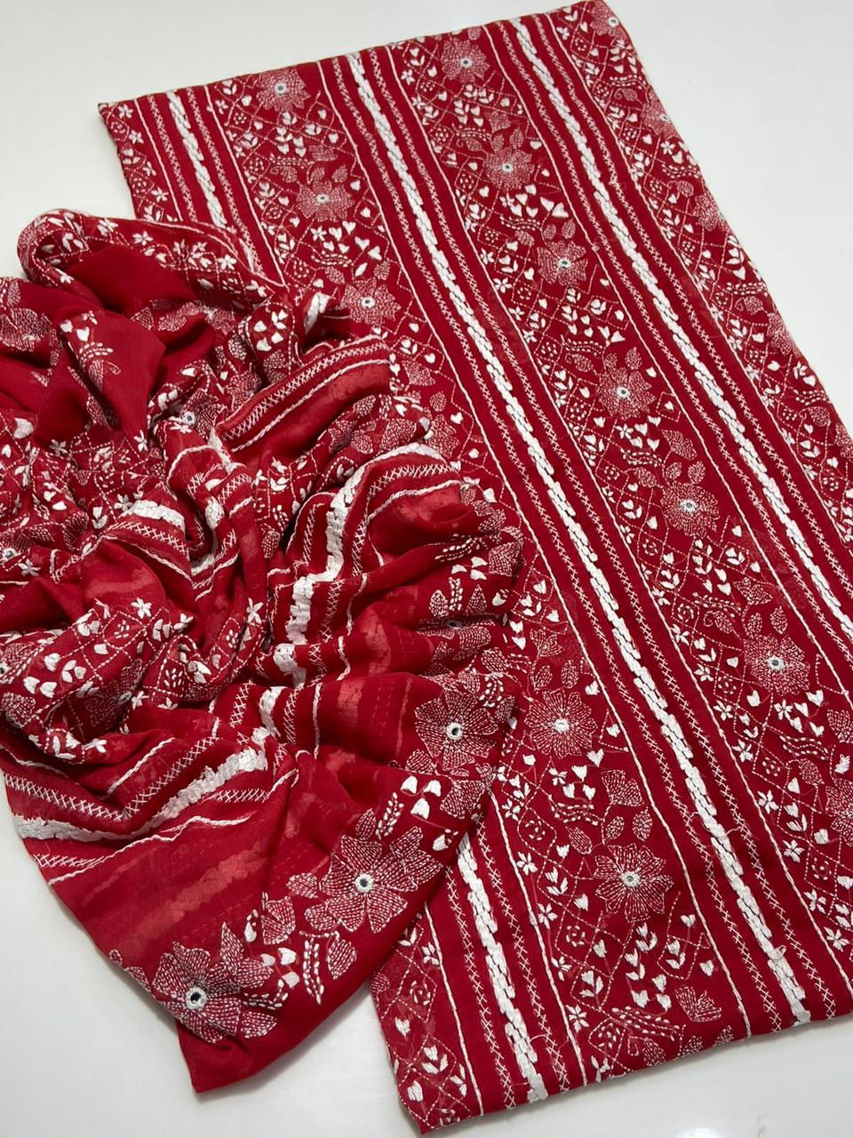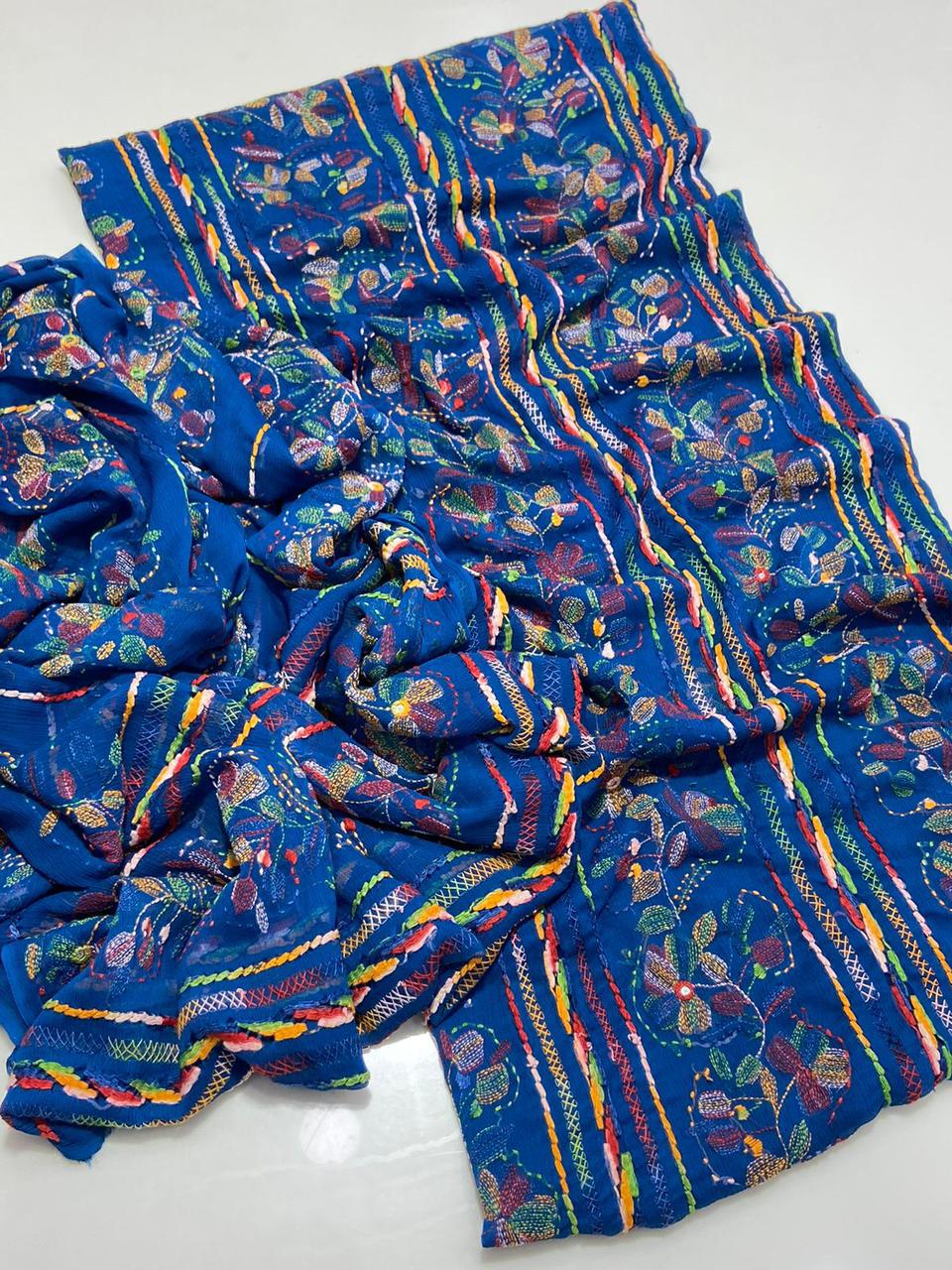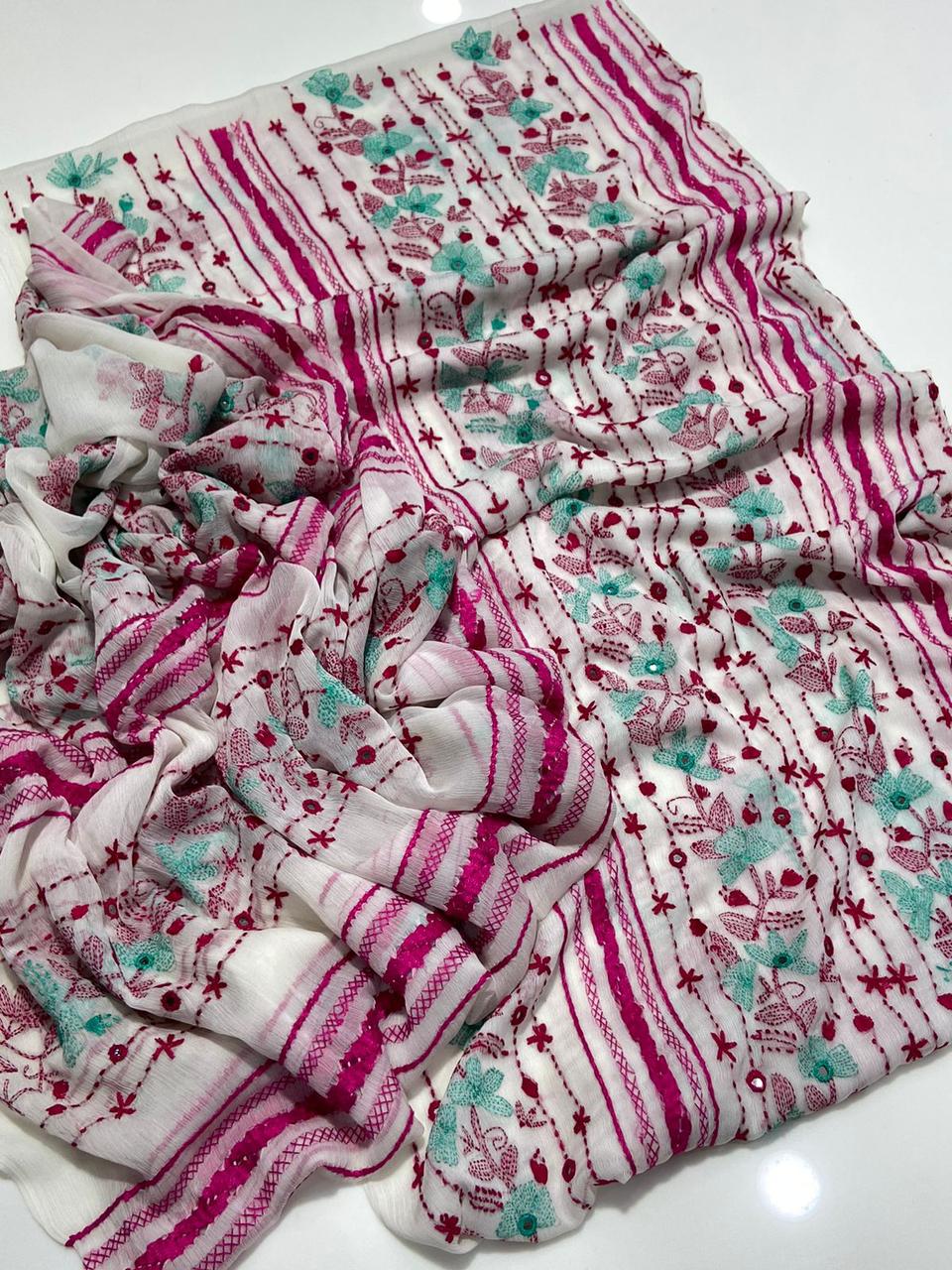 Bamber Chiffon Handmade Kacha Tanka + Tartkashi Work Fully Embroidered *Shirt & Dupatta 2 Pc Dress 👗