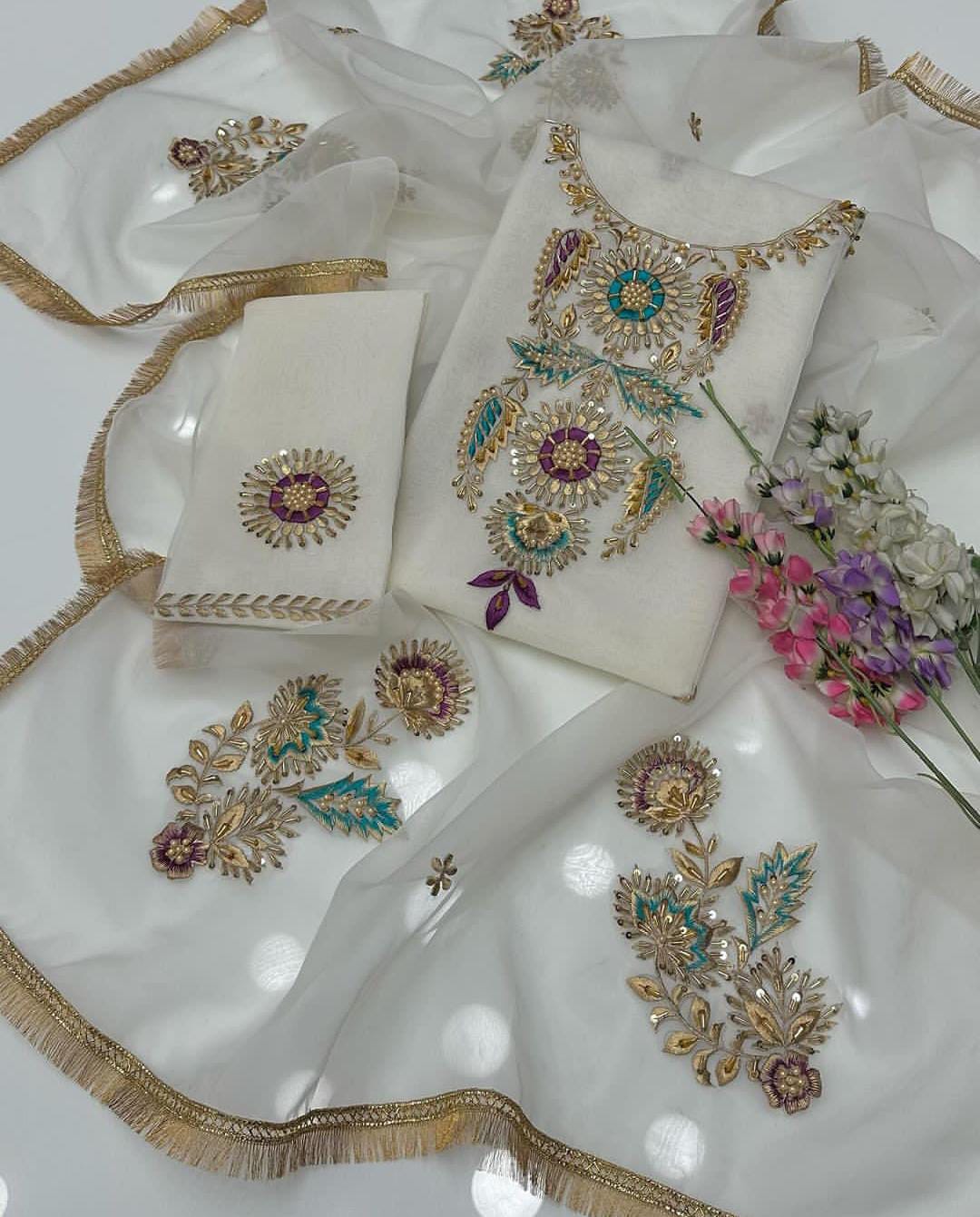 04 side border Dupatta Handmade Resham, cut dana and motive work