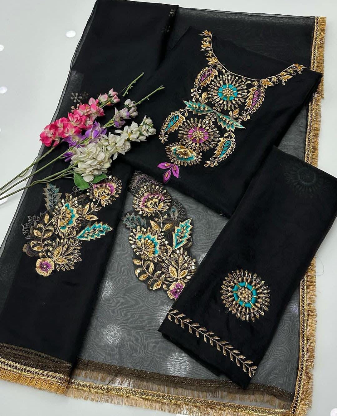 Shirt Handmade Resham, cut dana and motive work