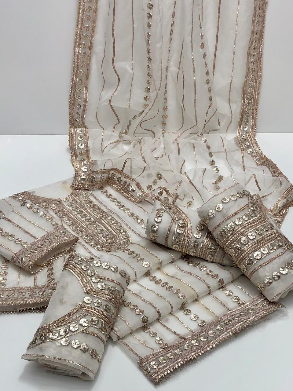 Pure Organza Handmade LCD Gotta Kinari Heavy Work Shirt With Heavy Goota 4 Side Work Organza Duppata 2 Pc Dress 👗Â