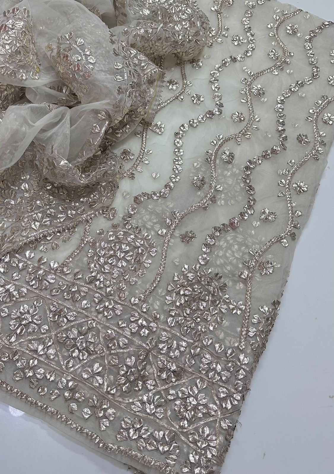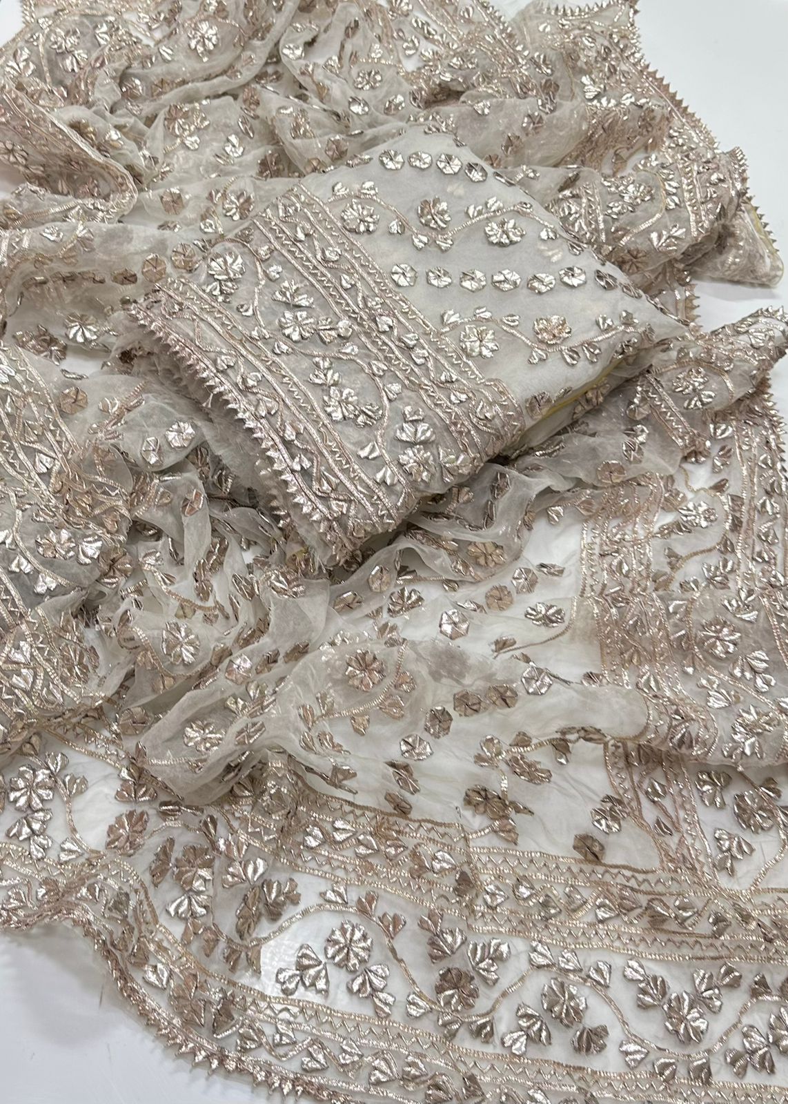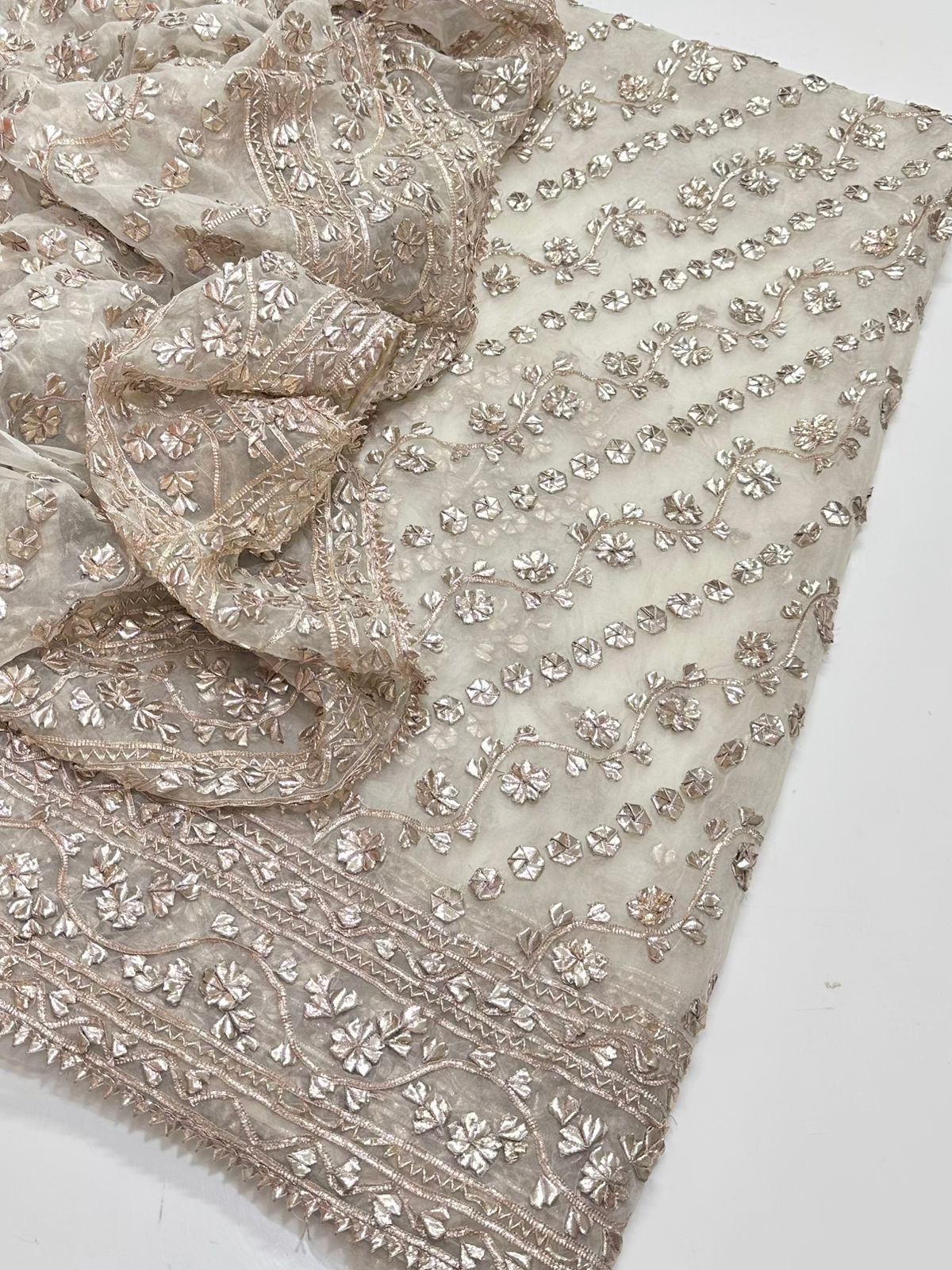 Shirt Pure Organza Handmade LCD Gotta Allover Jaal Work With Heavy 4 side Border Jaal Work Duppta 2 Pcs Suit..
