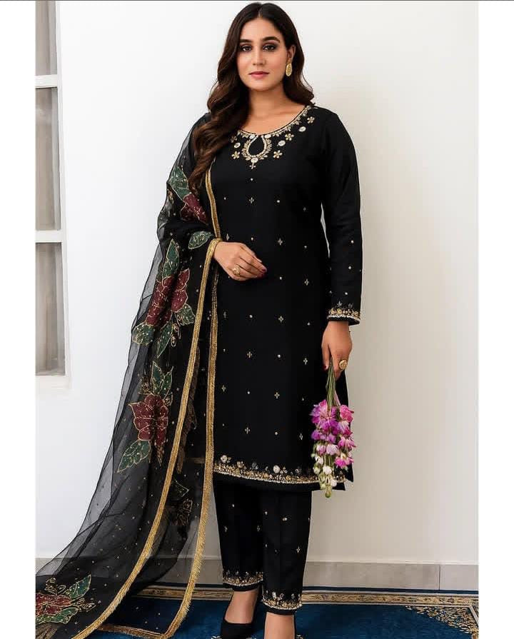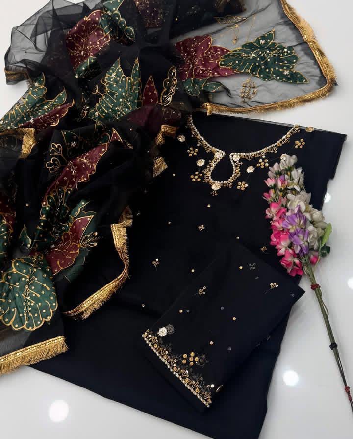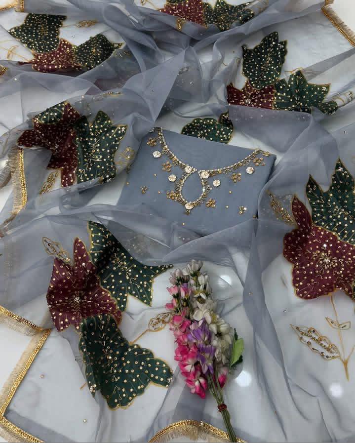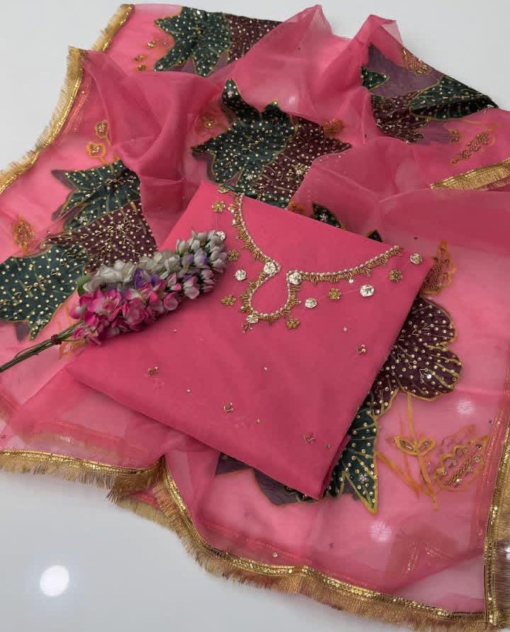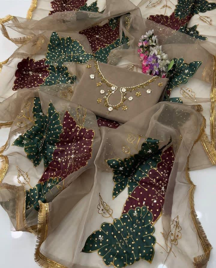 Beautiful Handwork Adda Work With Zarri Sequence Embroidery 🪡 Organza Shirt Along With HandPaint 🎨 Heavy Fancy Organza Duppata 2 Pc Dre’s