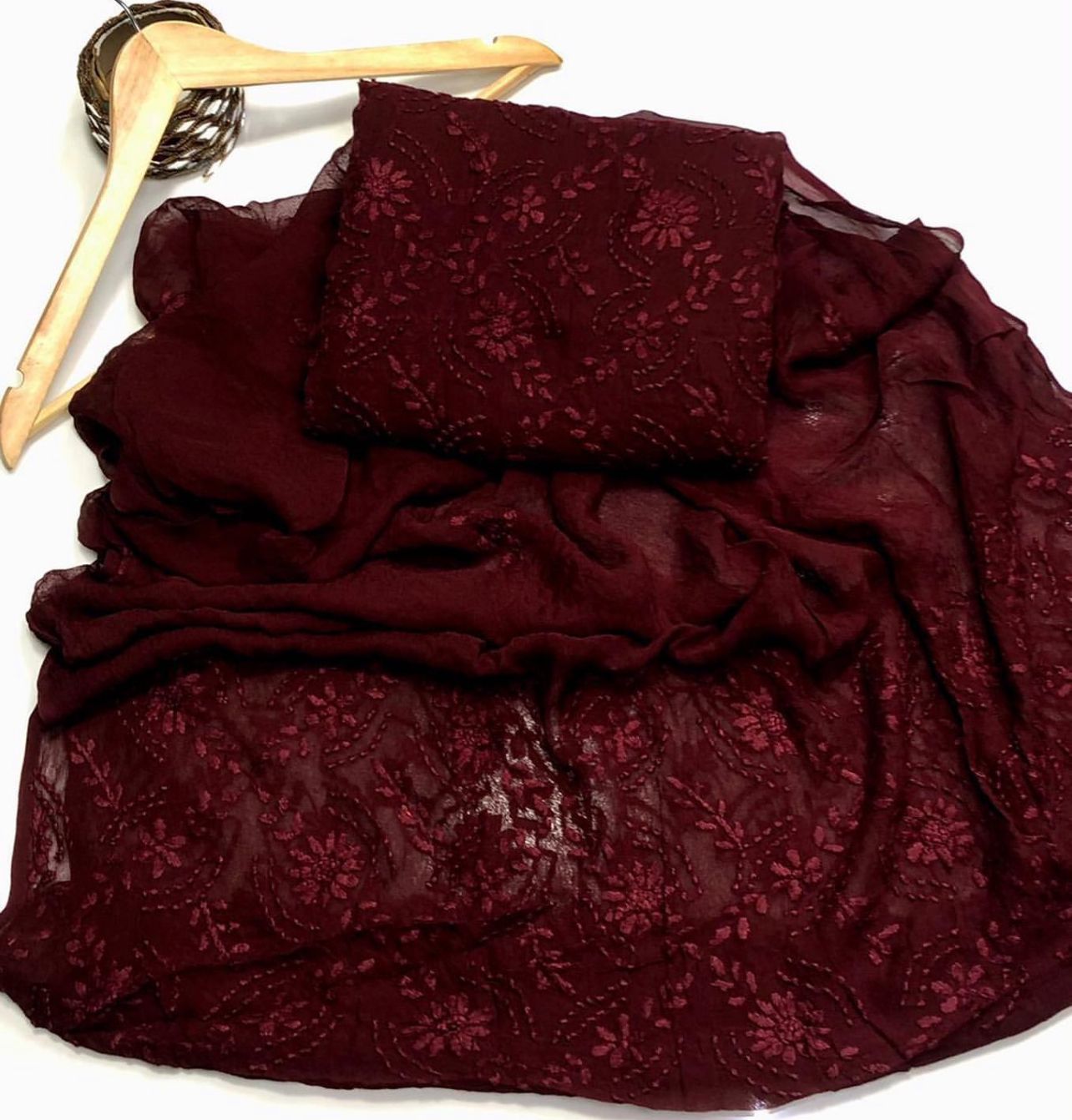 2 pc handmade paka bor handmade work chiffon fabric 2 pc dress ๐ย