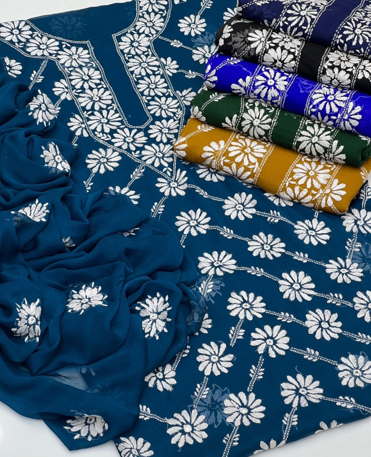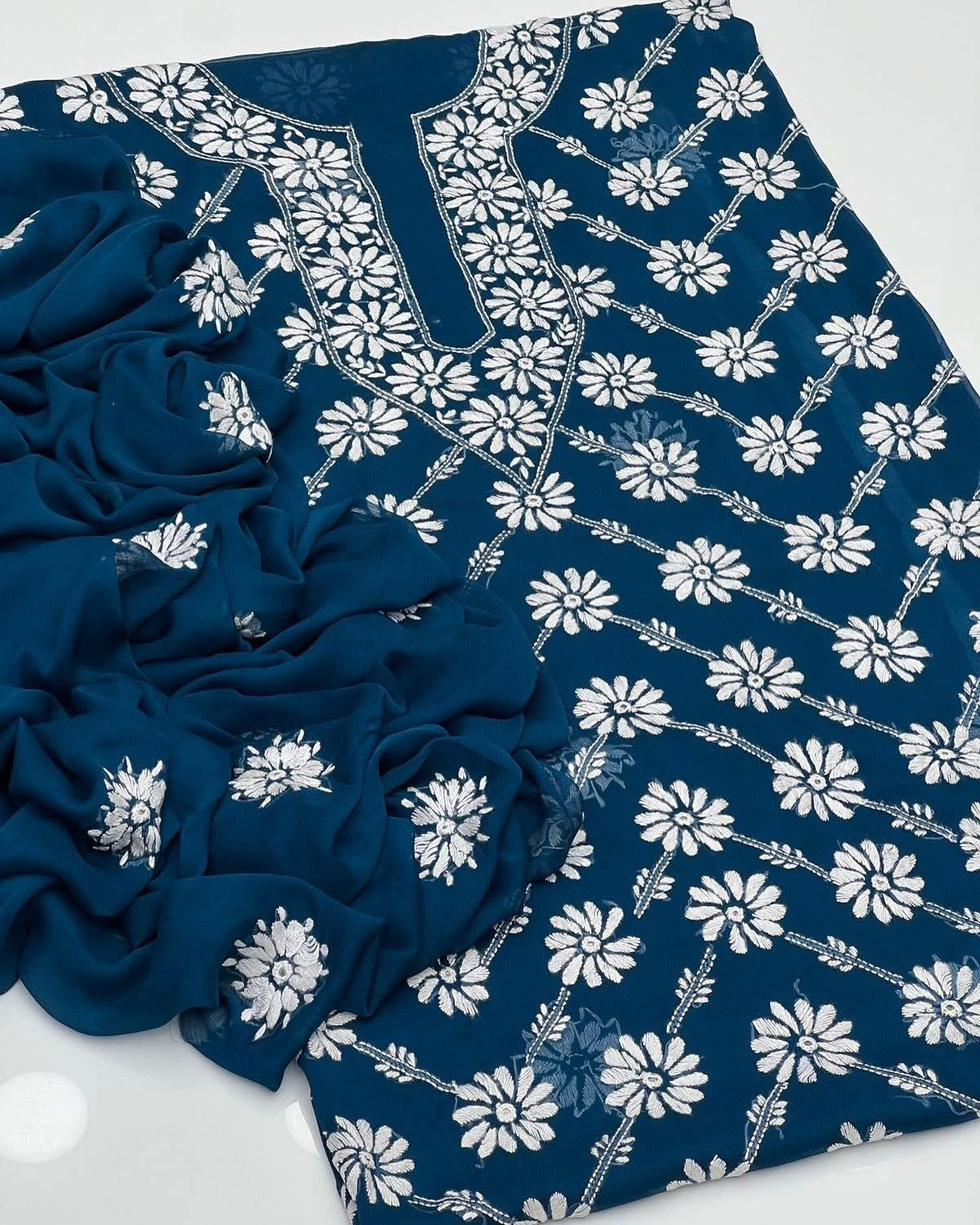 Handmade Paka tanka jaal mirror chiffon fabric 2 pc dress