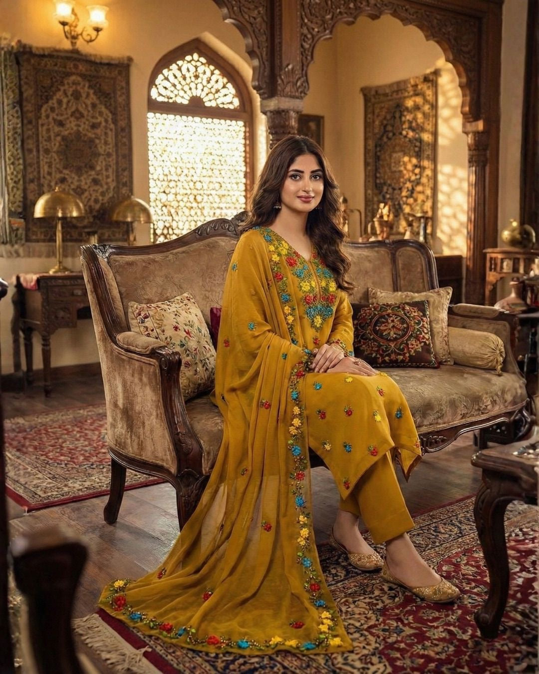 Soft Bamber Chiffon Special Multi Ribbon Handmade Gala & Botti Work Shirt & Dupatta 4 Side Ribbon Work 2Pcs Dress 👗.