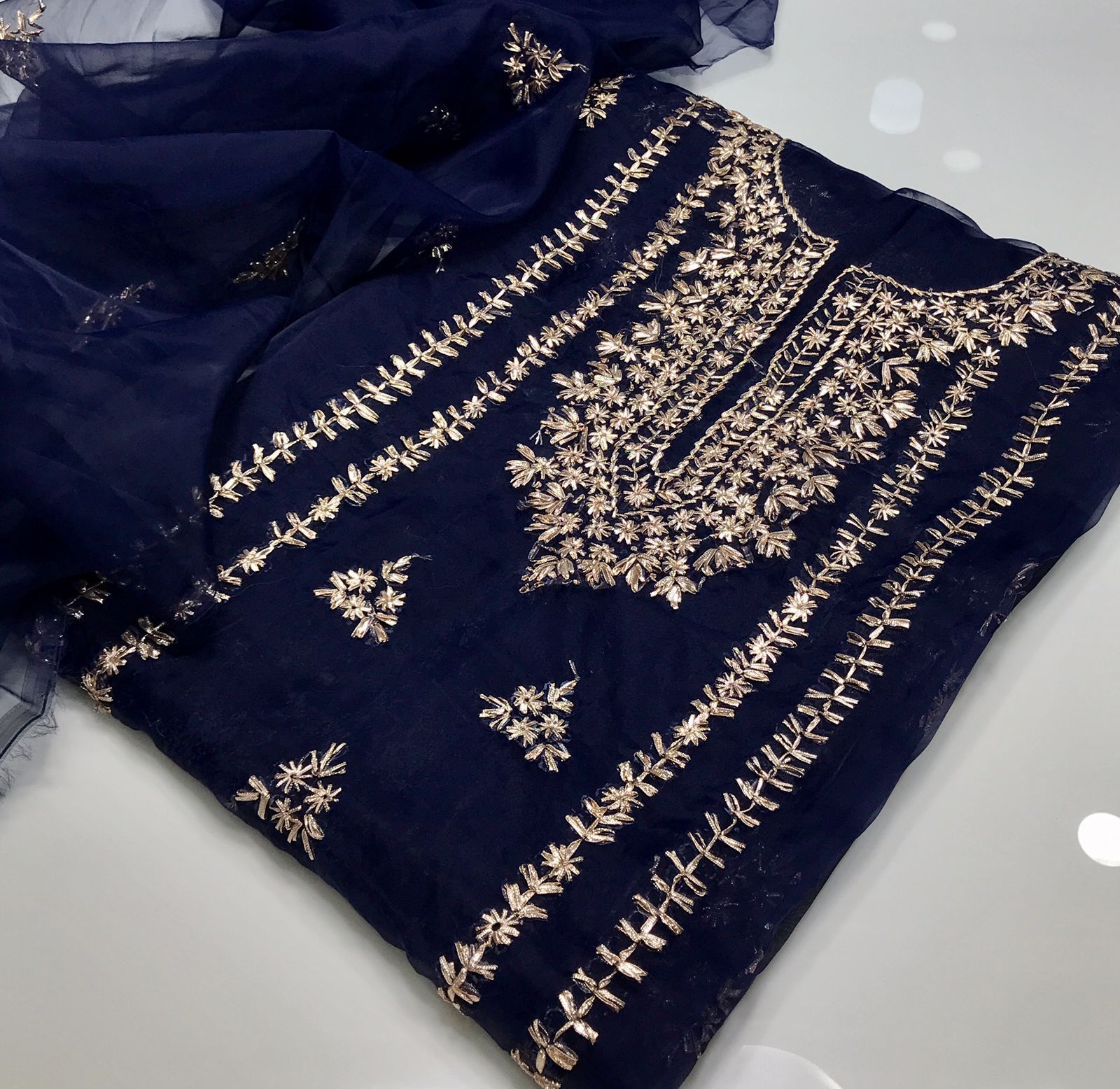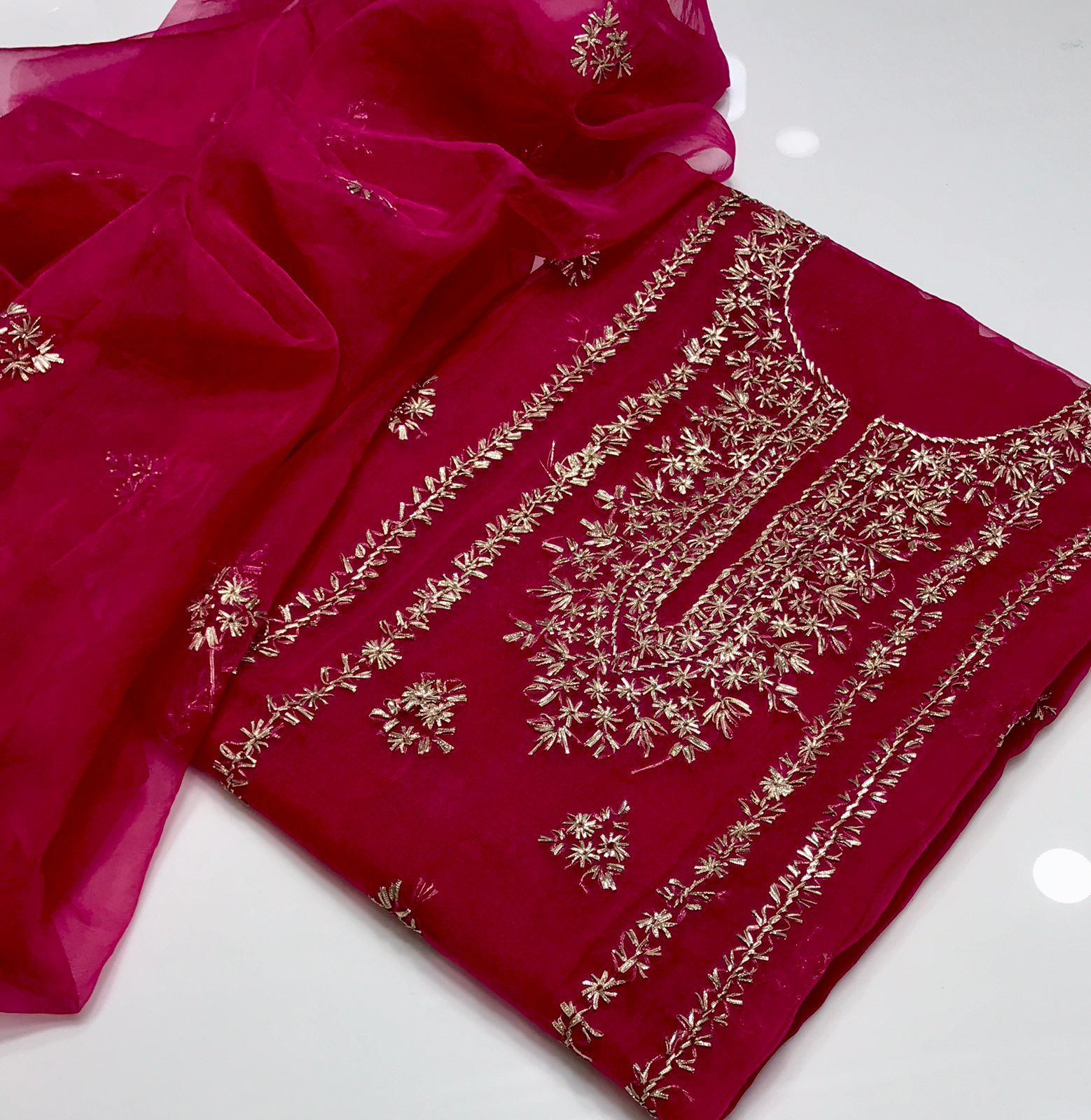 Organza Fabric HandMade Gotta Work Embroidered Shirt & Dupatta