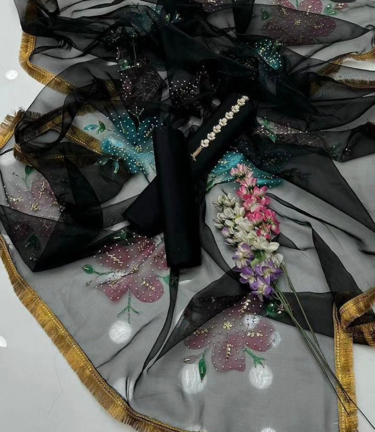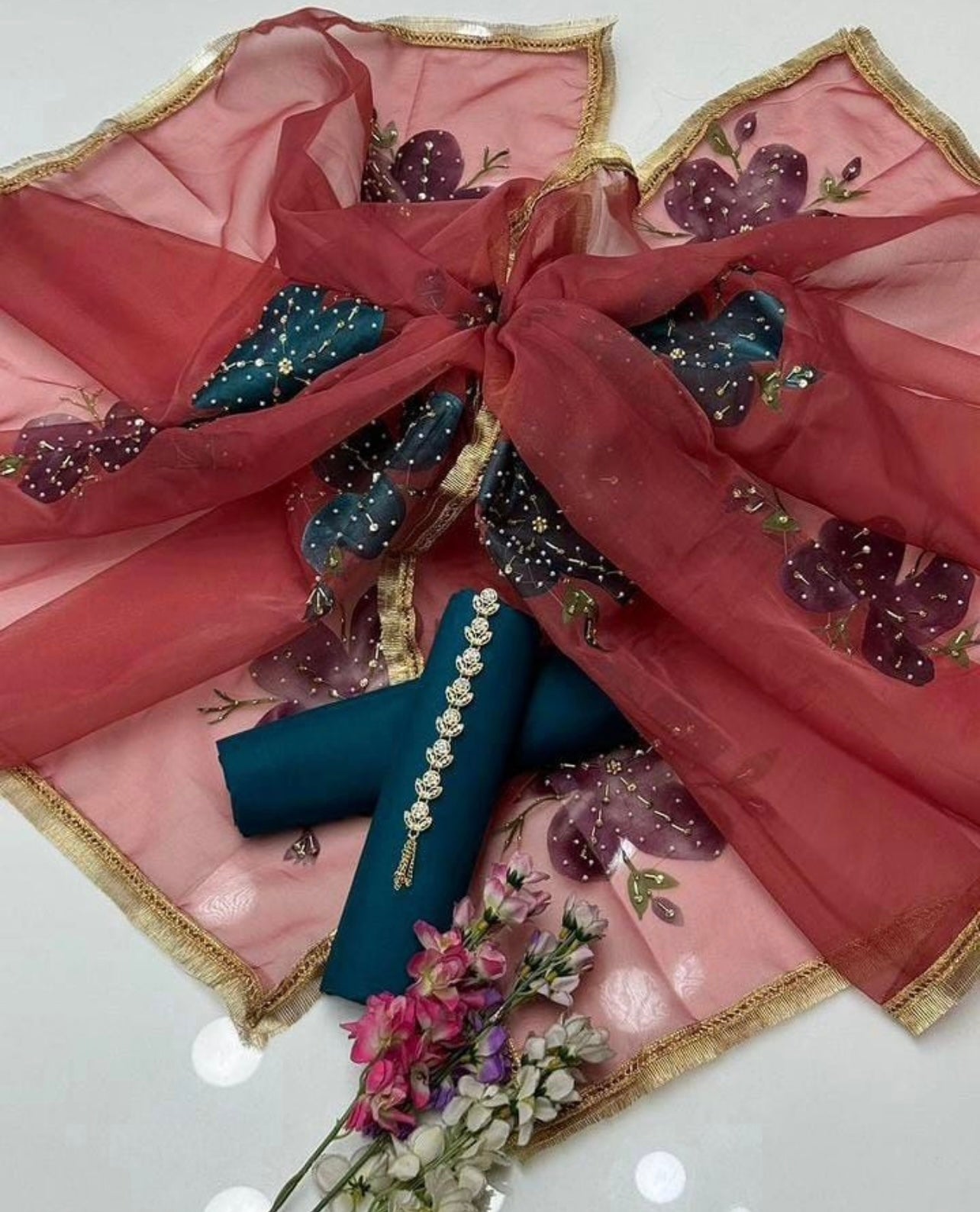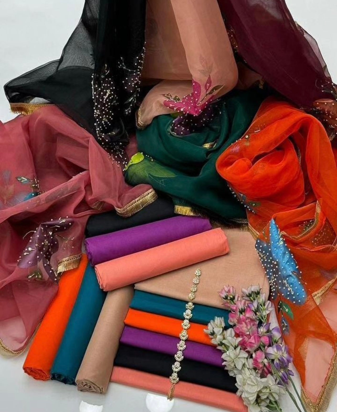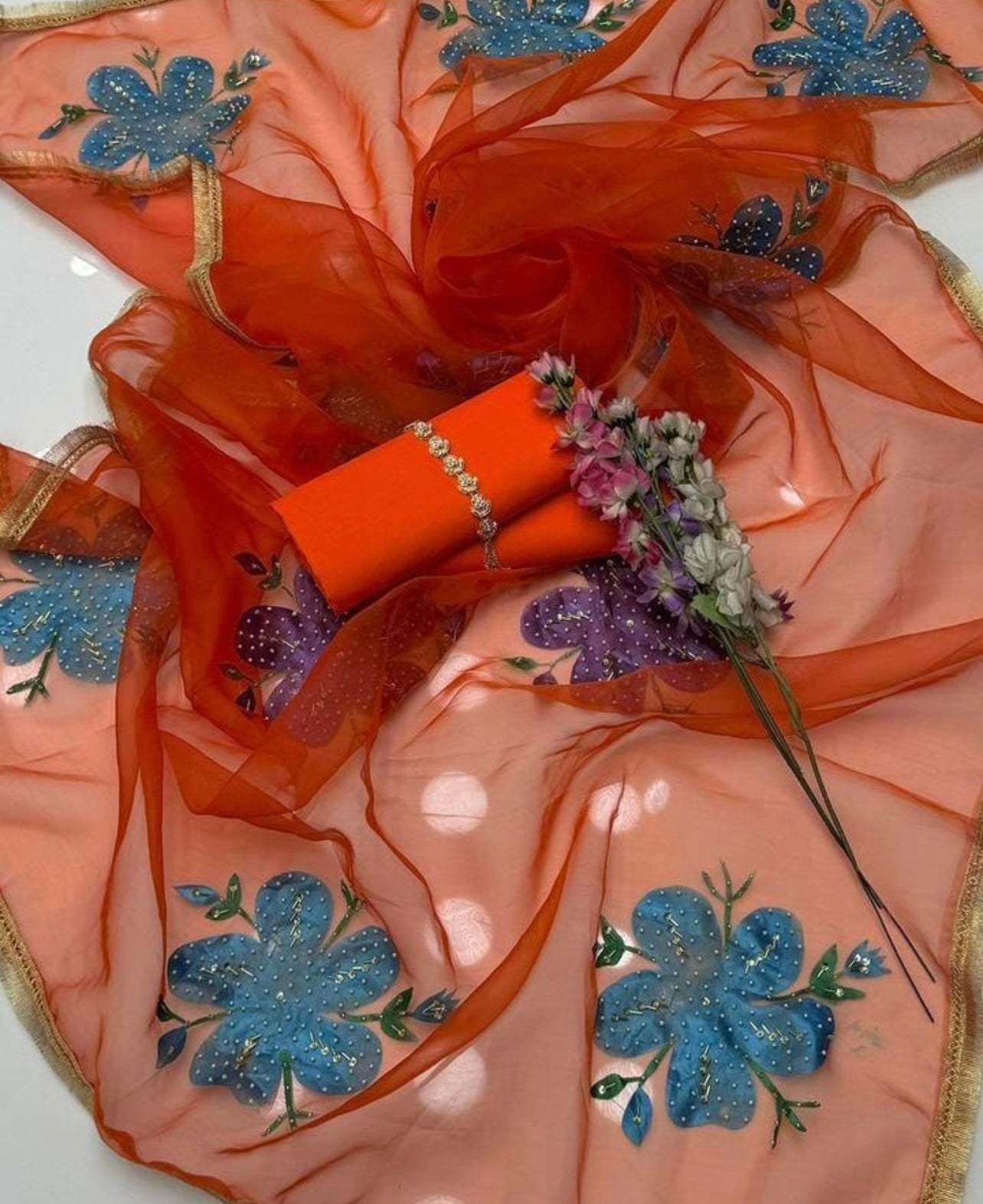 Handwork Zaari beads work with handmade oil paint pure organza duppata