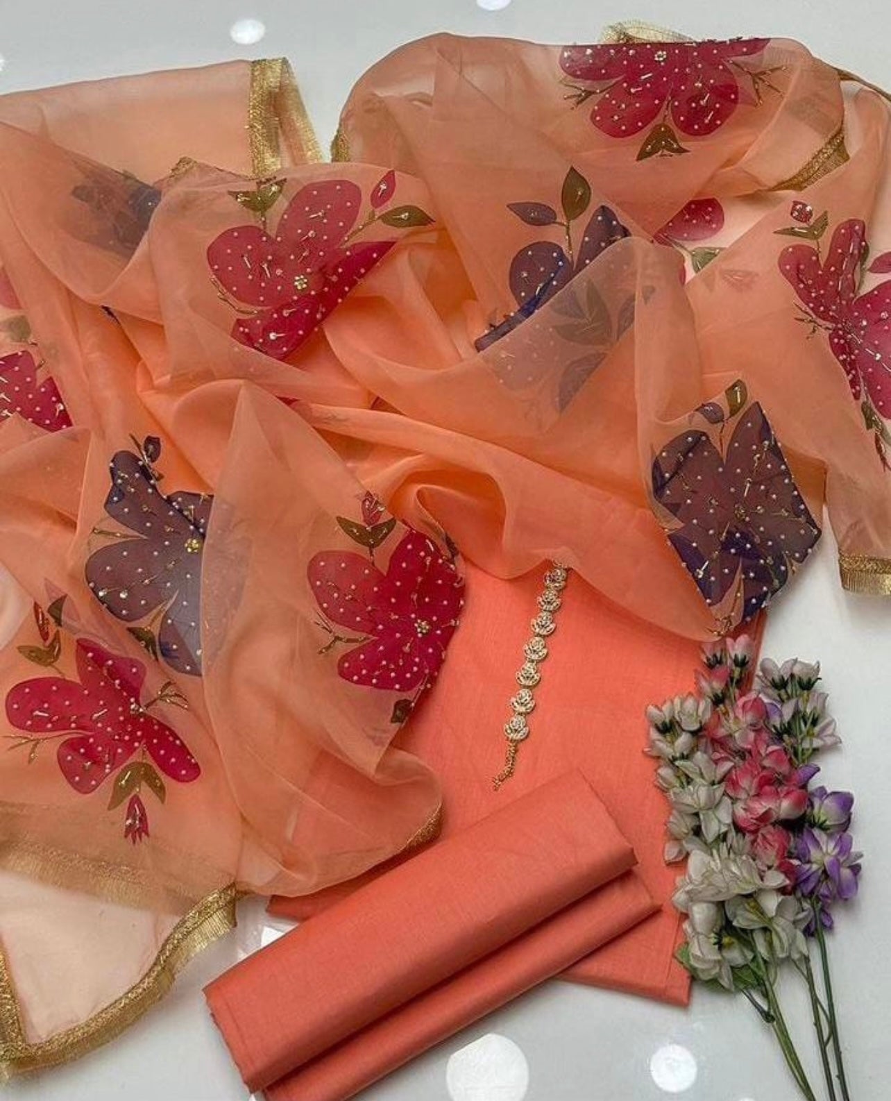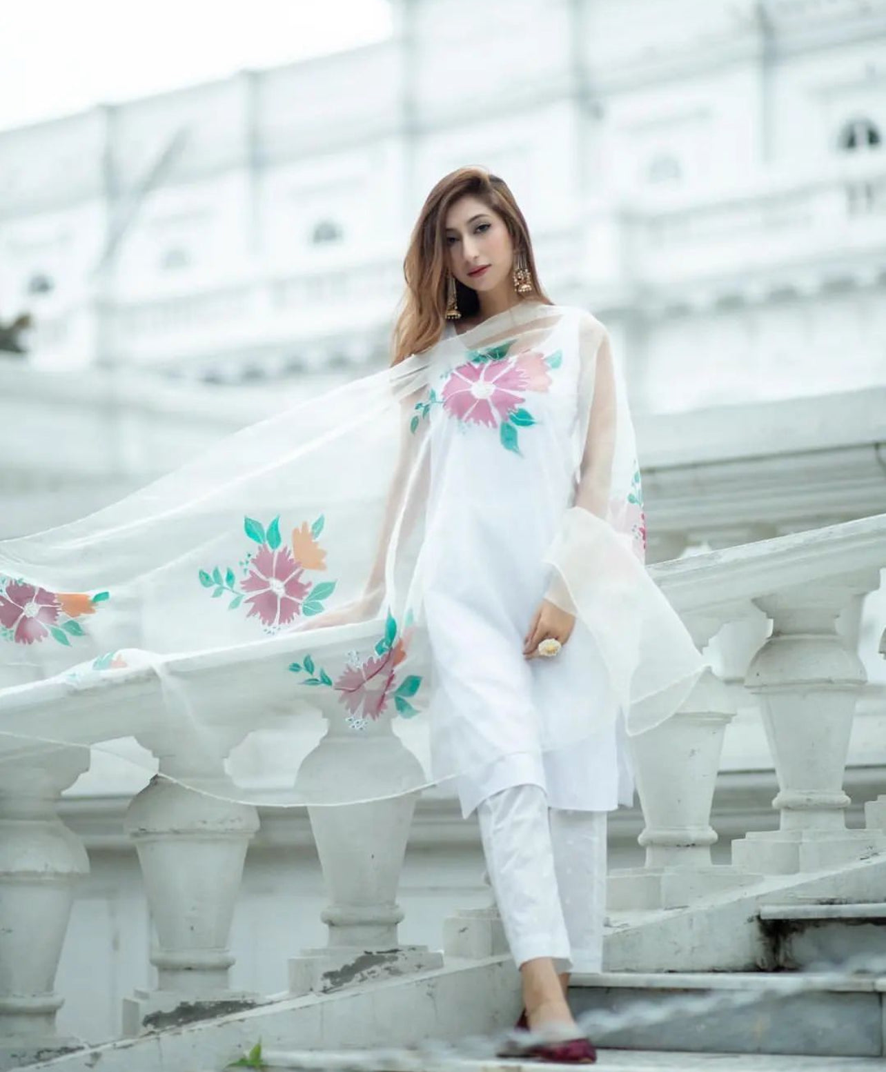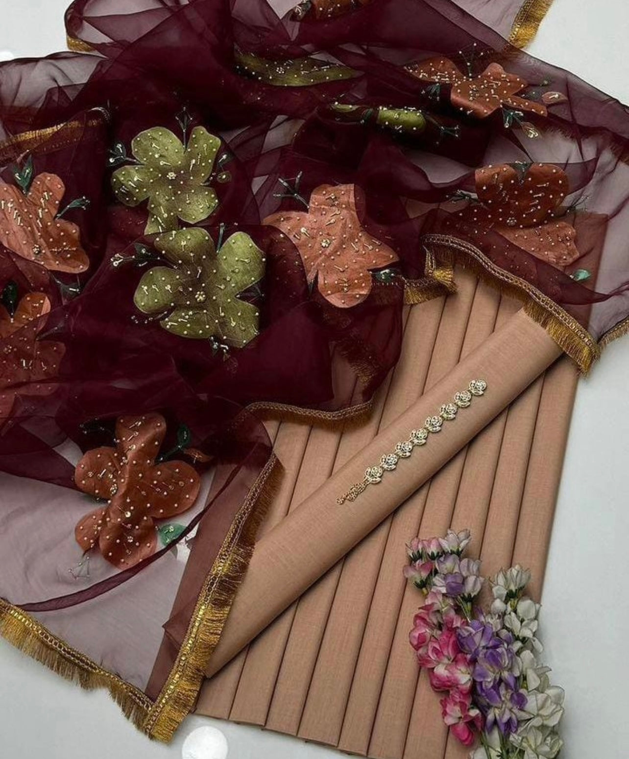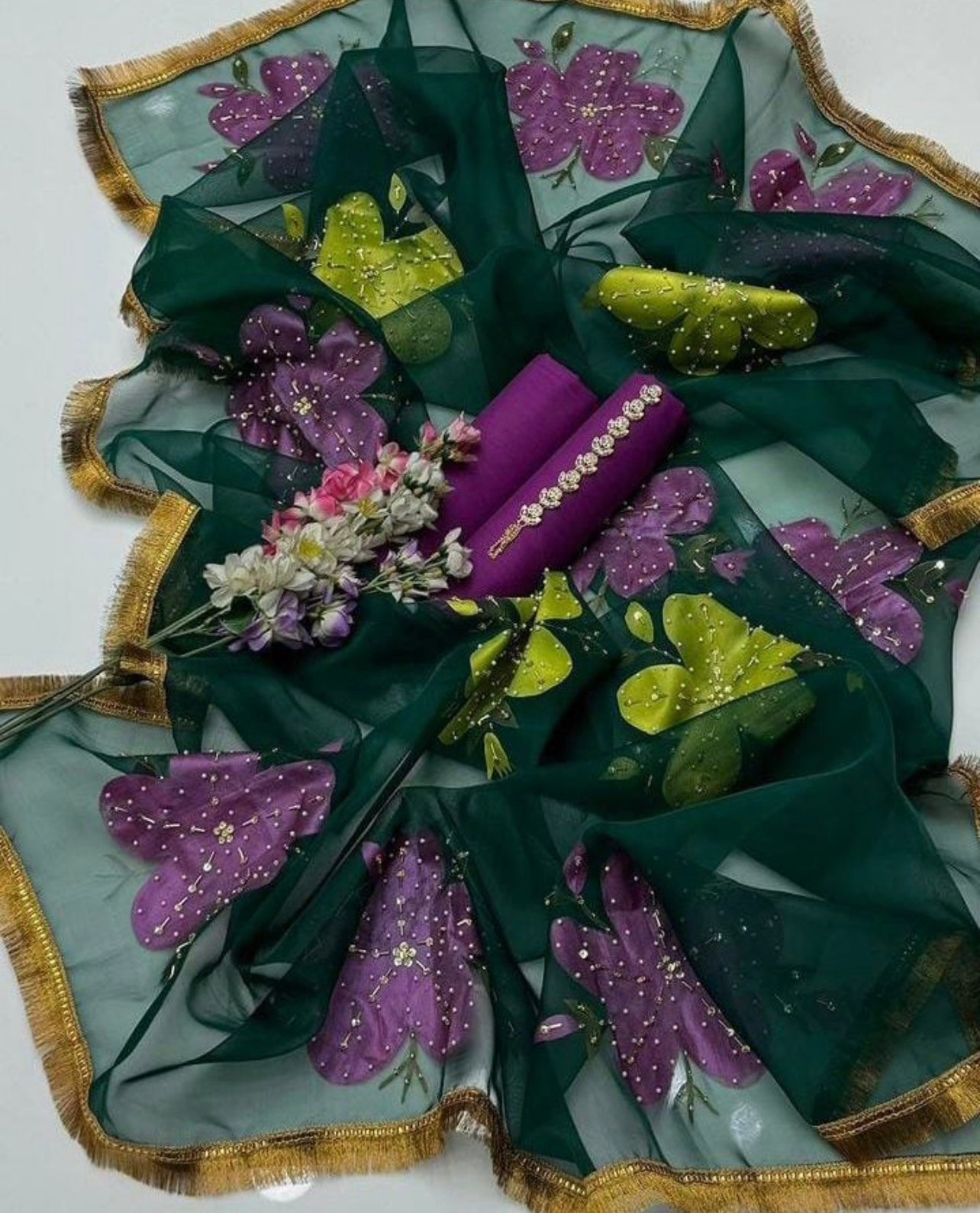 Handwork Zaari beads work with handmade oil paint pure organza duppata