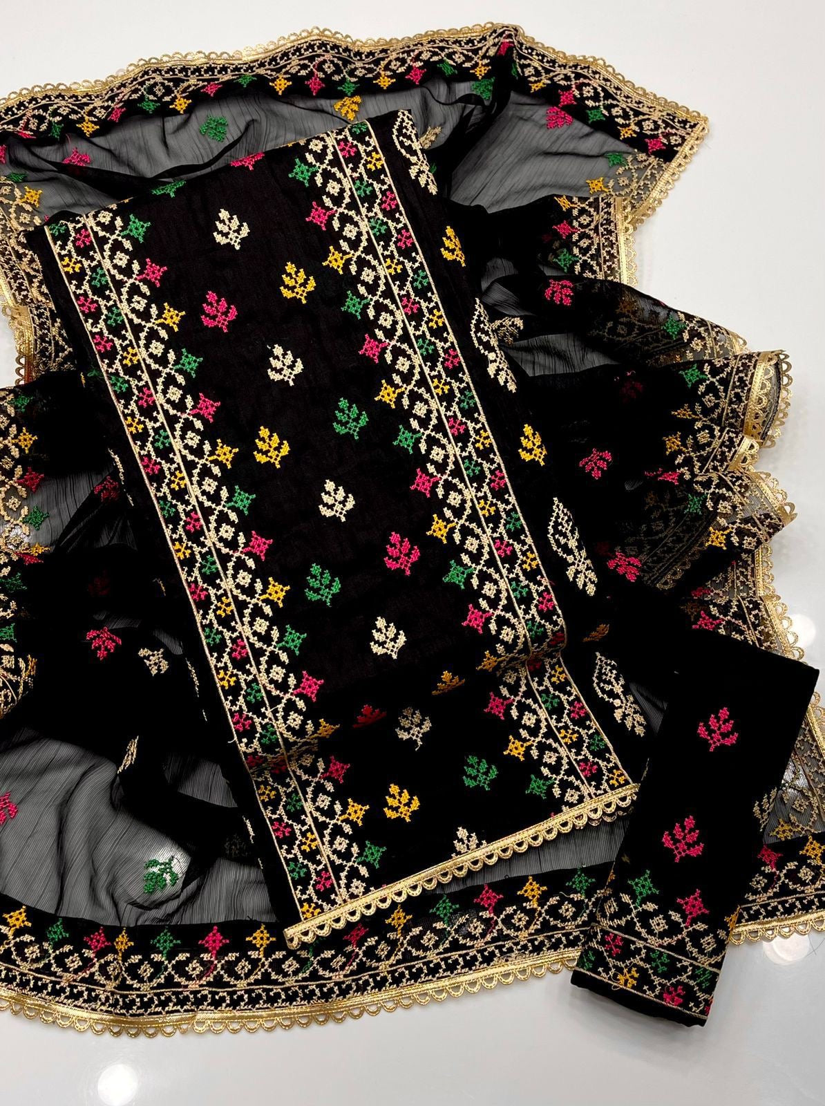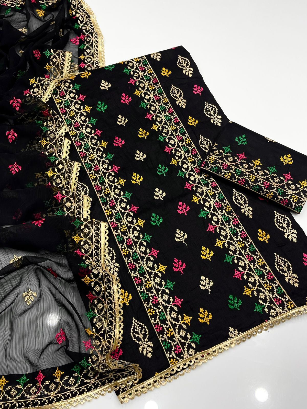 Lawn Cotton Fabric Multi-Colour CrossStitch Embroidered *Shirt & Trouser*