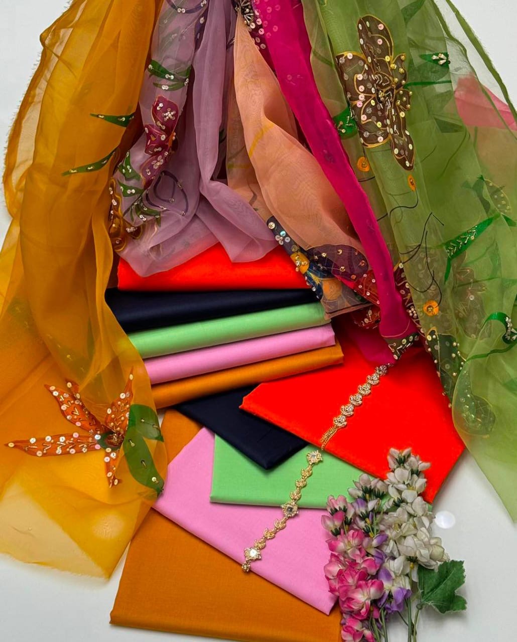 Organza Brush paint Dupatta with Cut dana, motive and Sitari Embroidery