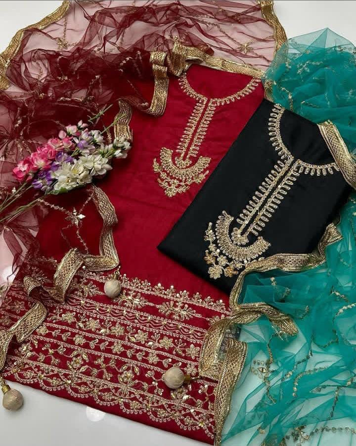 Galla Daman full heavy adda work & nagina beats with heavy slives work shirt 11/24 inches Daman embroidery
