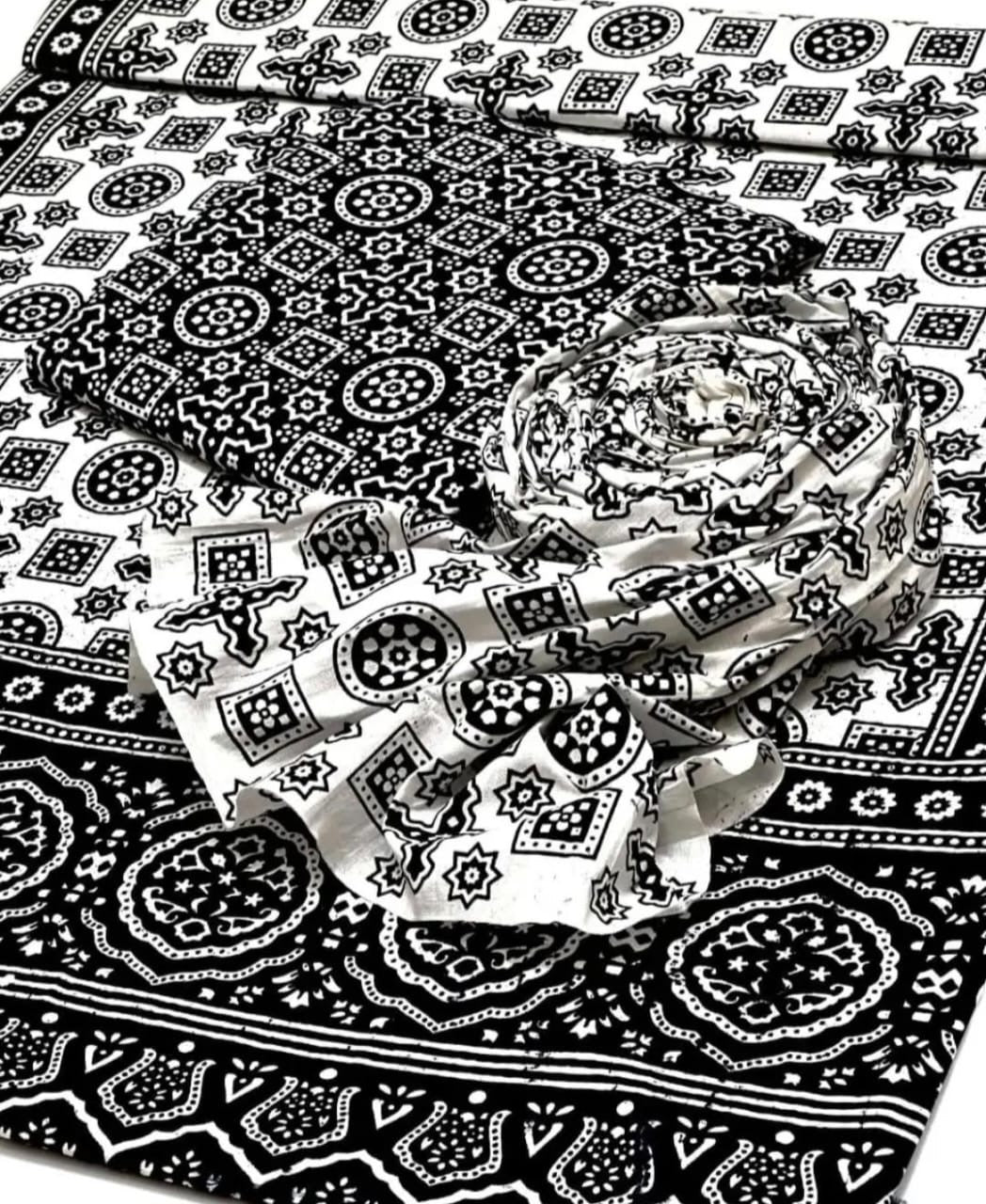 Ajrak print cotton fabric Dupata along with Trouser 3 pc dress