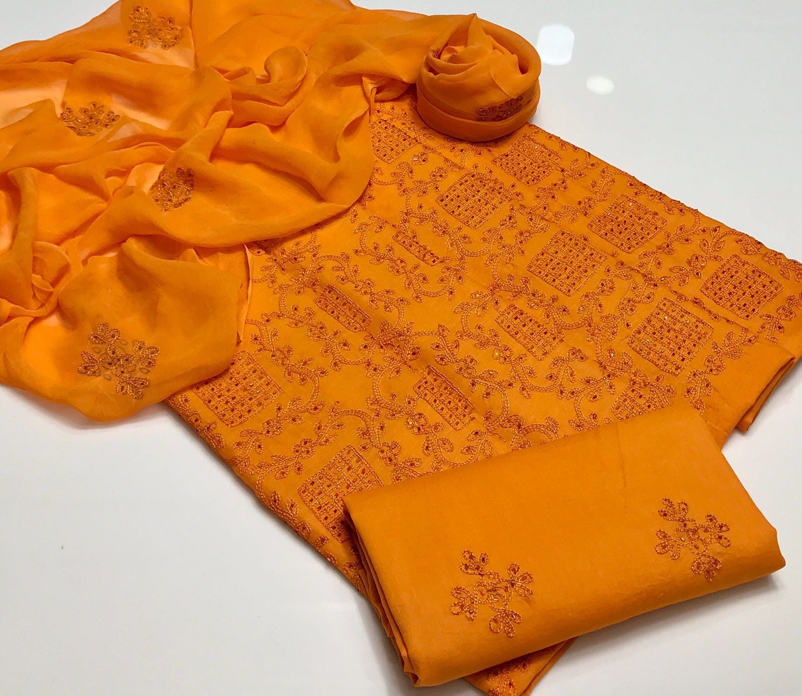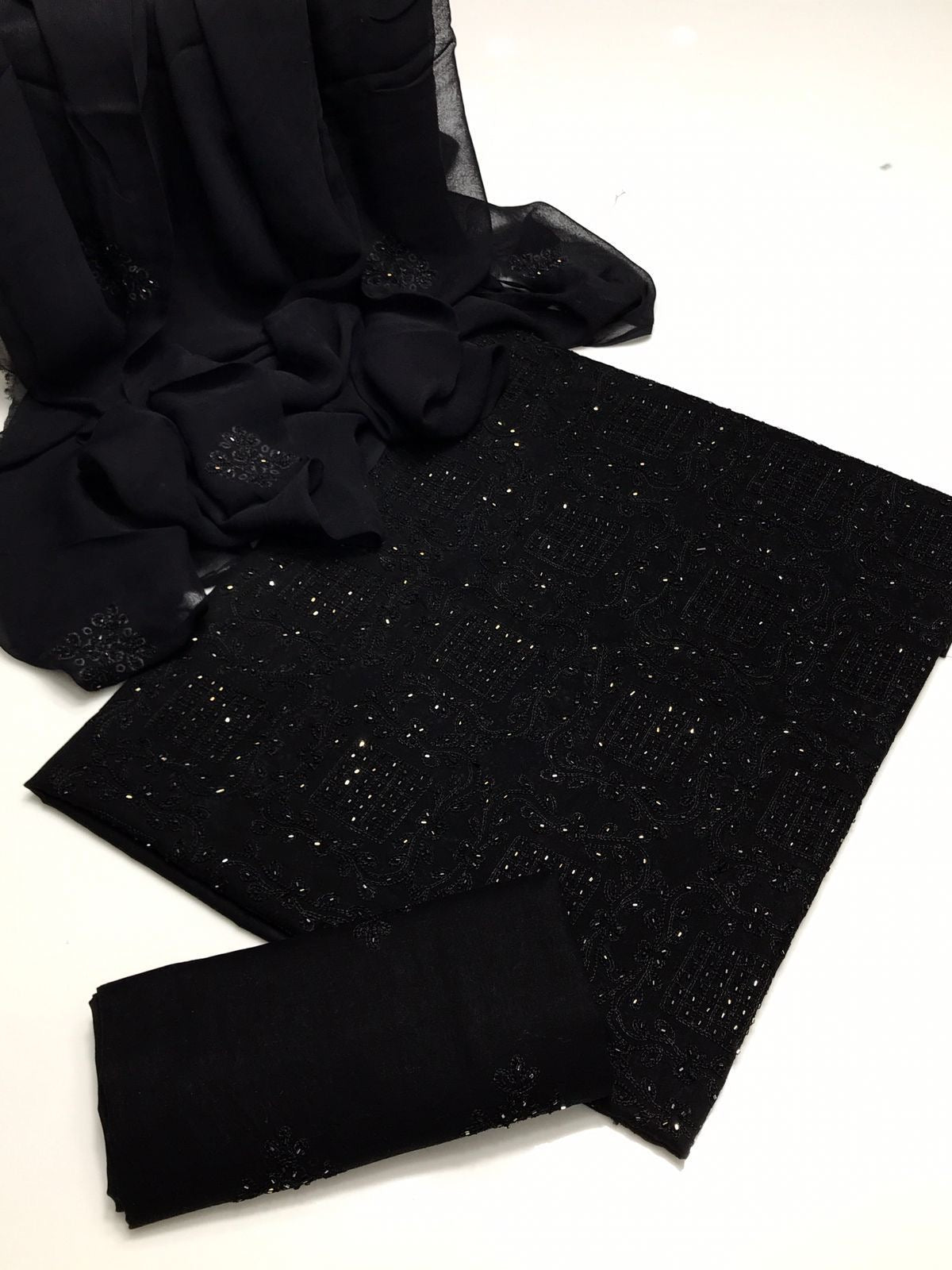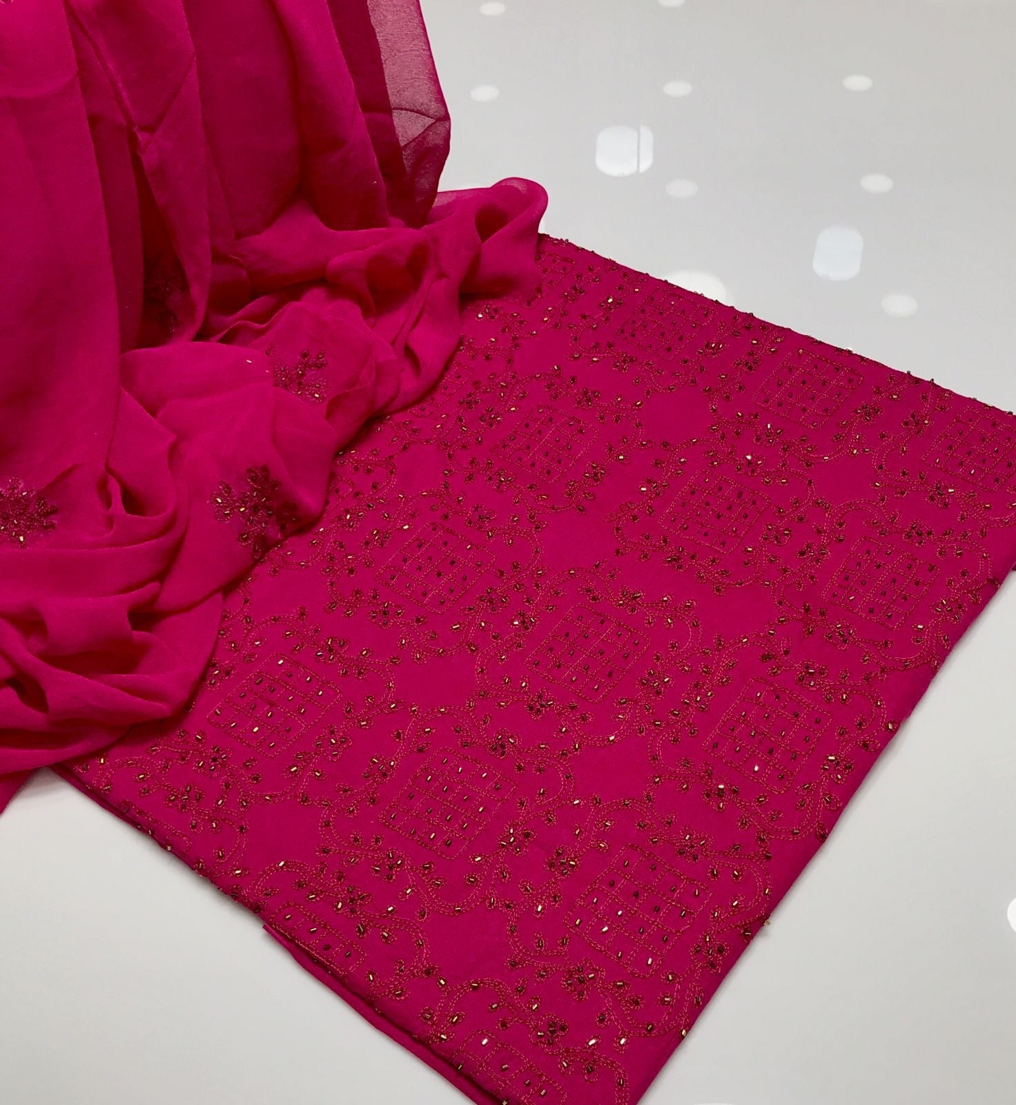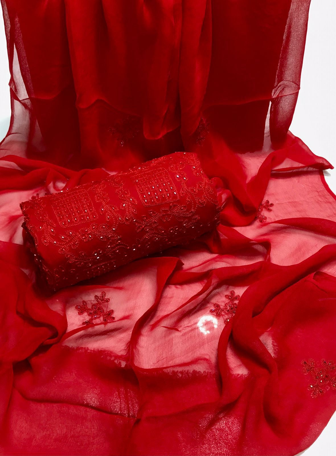 Lawn Fabric Handmade R cut moti work with chiifon dupata 3pc Dress