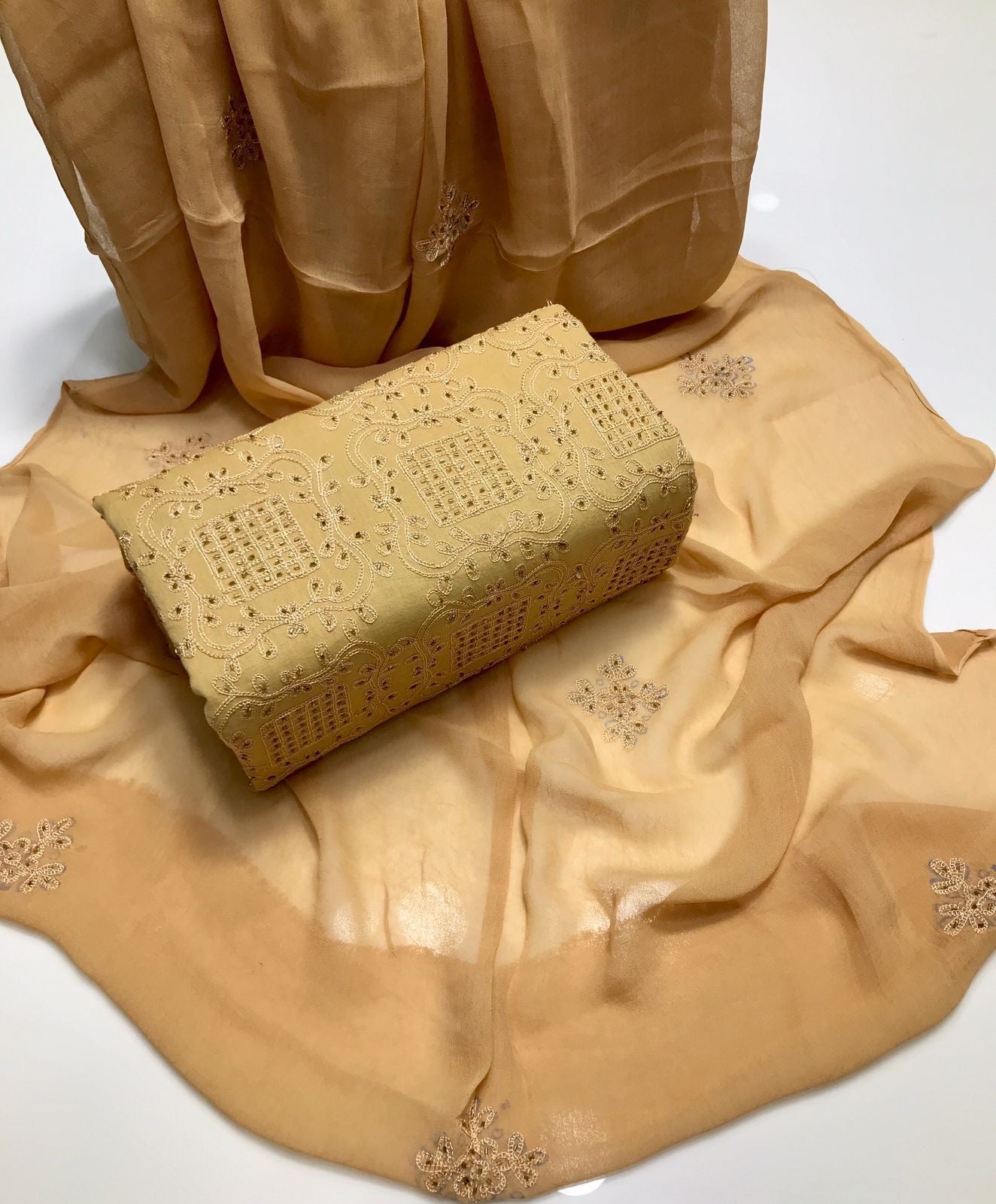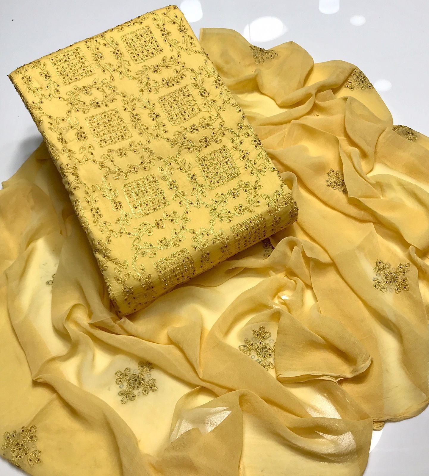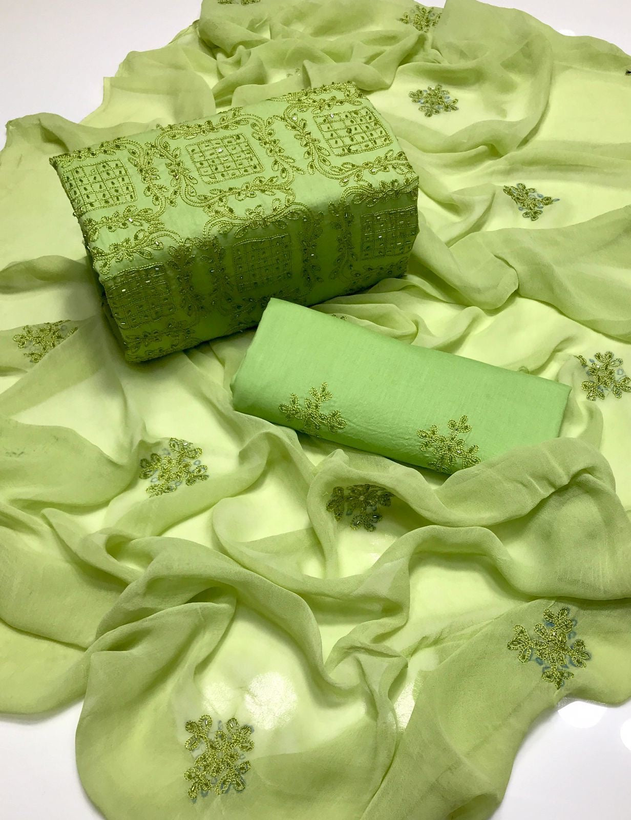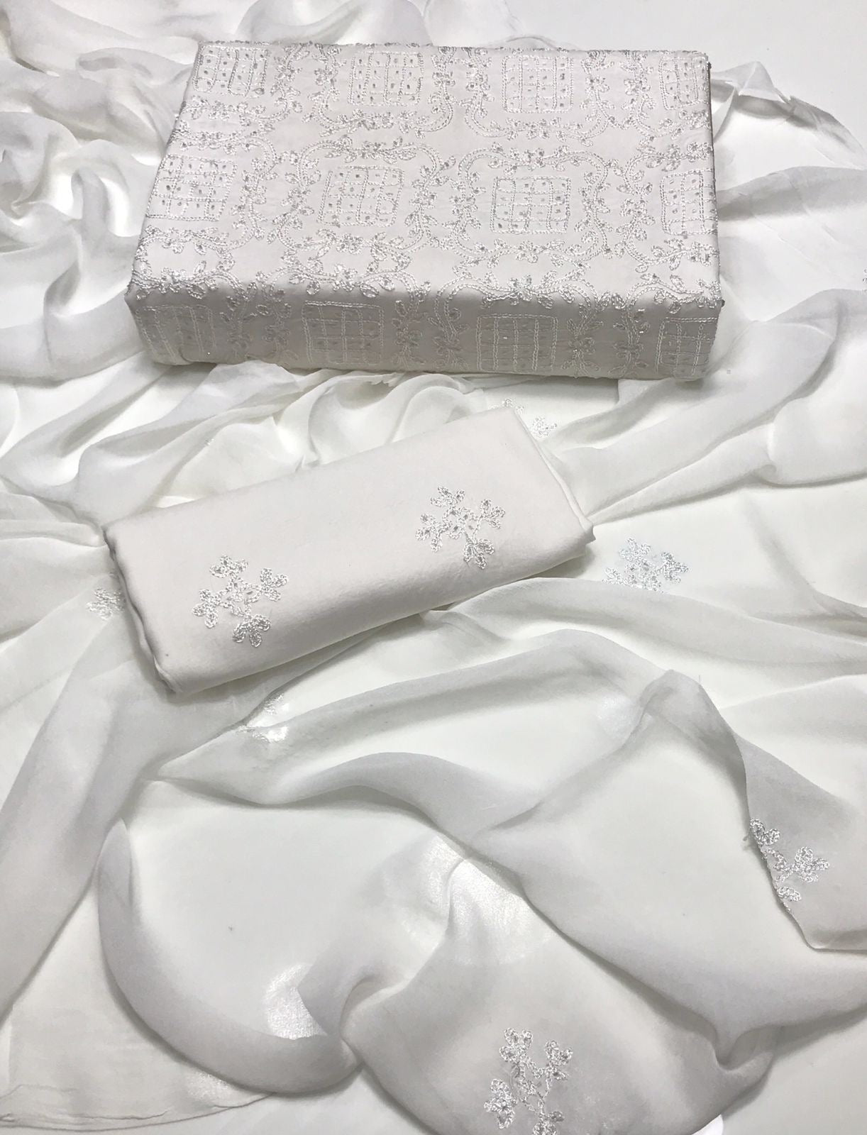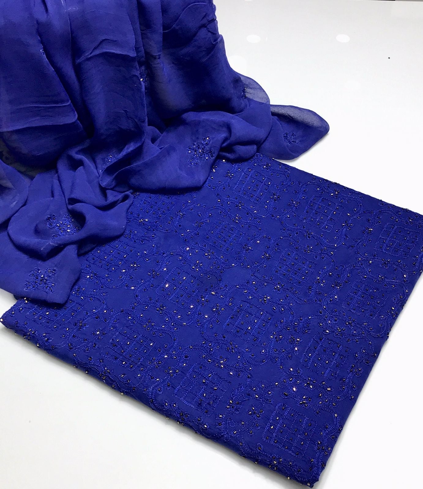 Lawn Fabric Handmade R cut moti work with chiifon dupata 3pc Dress
