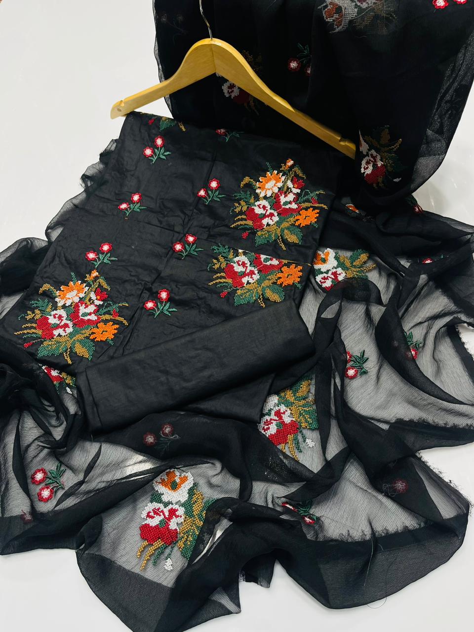➡️Dupatta chifon Bunch Style Embroidered,,