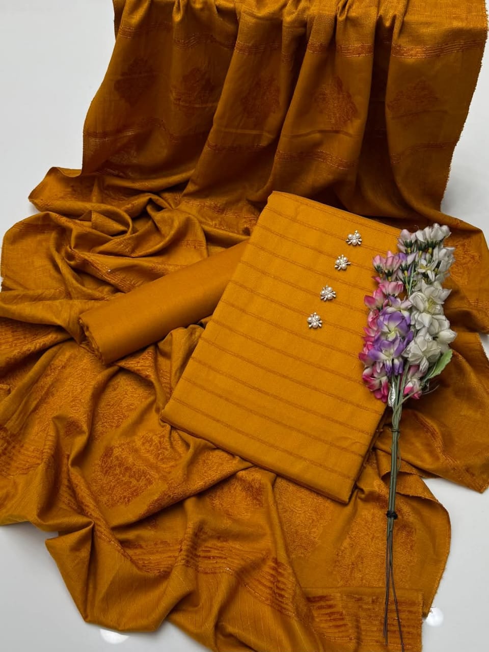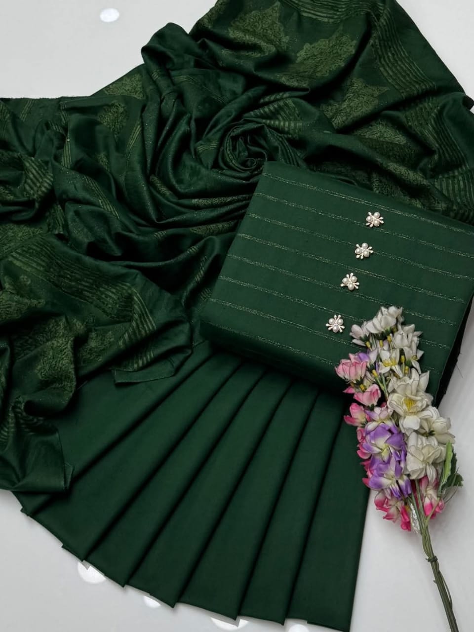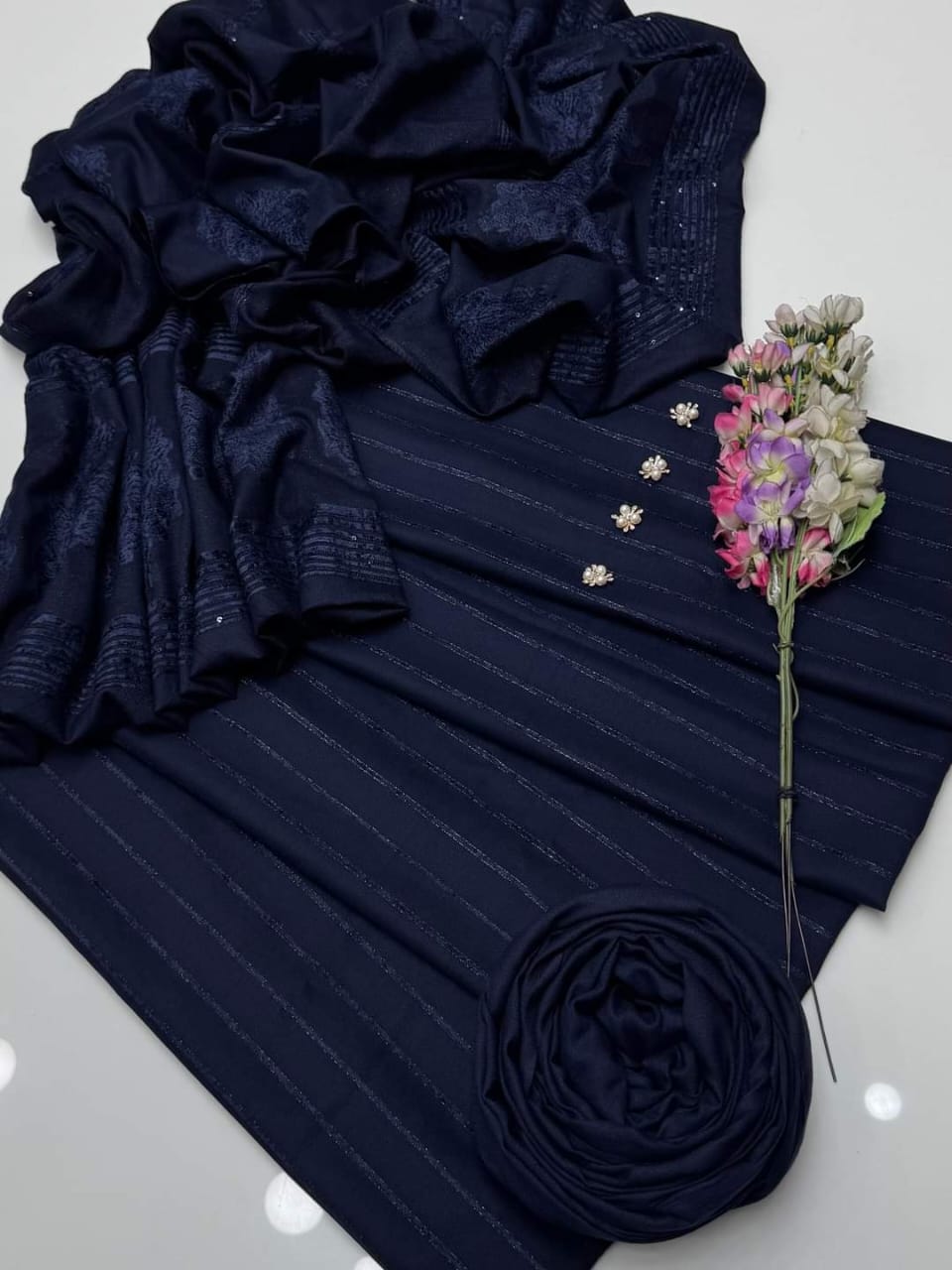 💕 Embrace the elegance of velvet this fall/winter with our 3Pc Dhanak Velvet Border Shirt, Plain Dhanak Trouser & Paired with a luxurious Jacquard Velvet Border Shawl 3 Pc Dress 👗