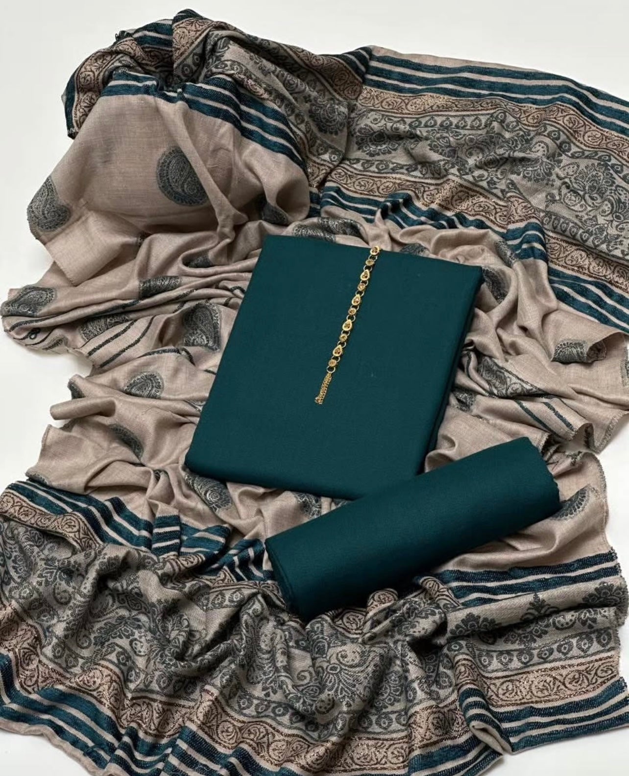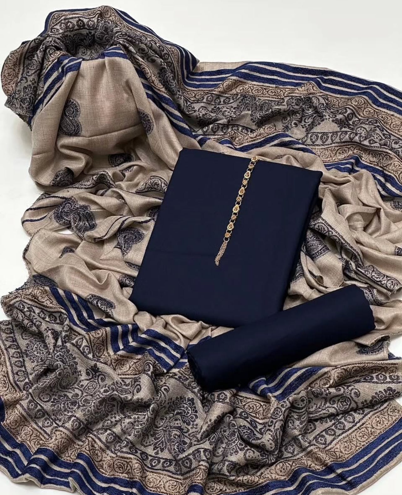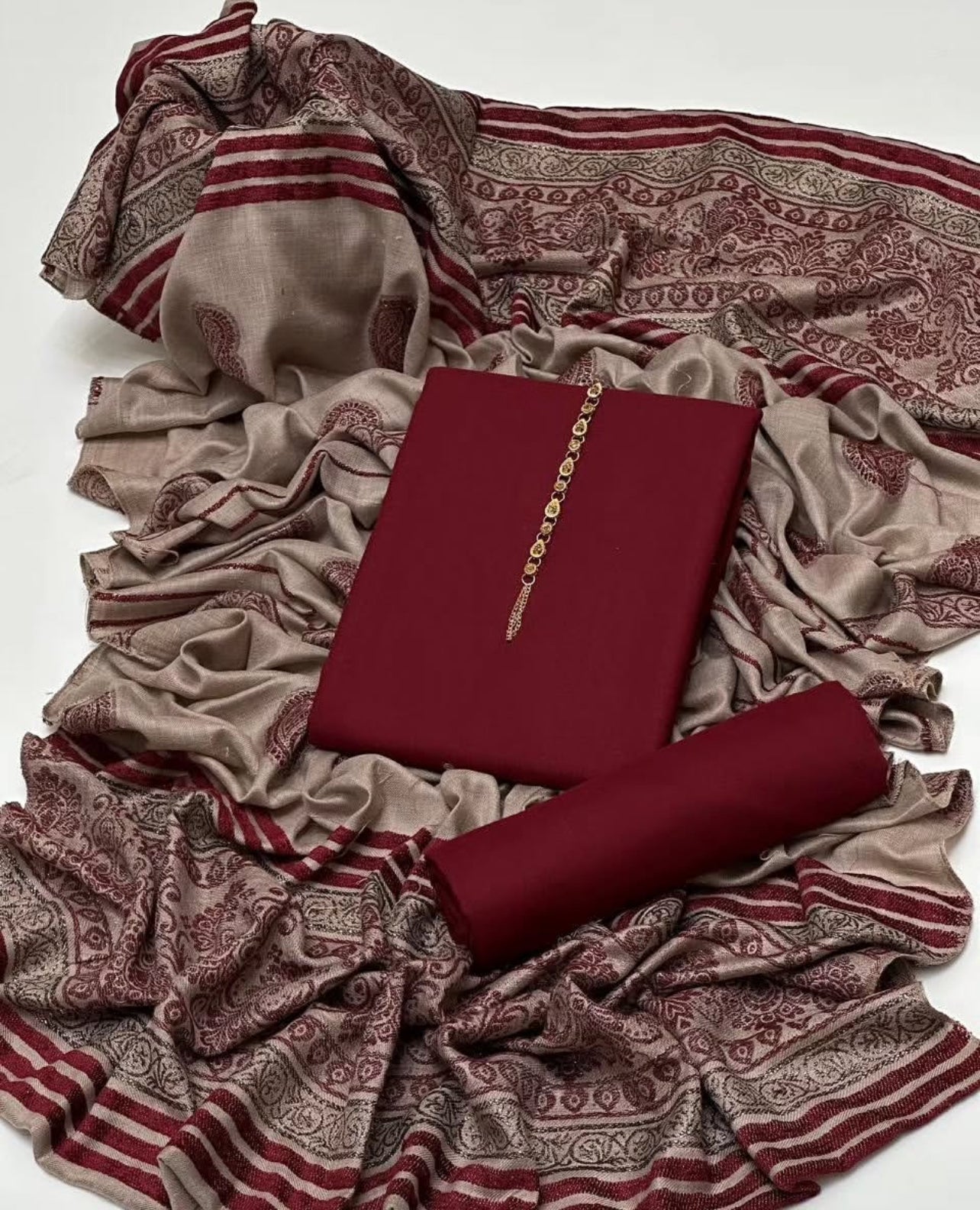 Plain Soft Marina Shirt & Trouser Along With Pashmina Wool