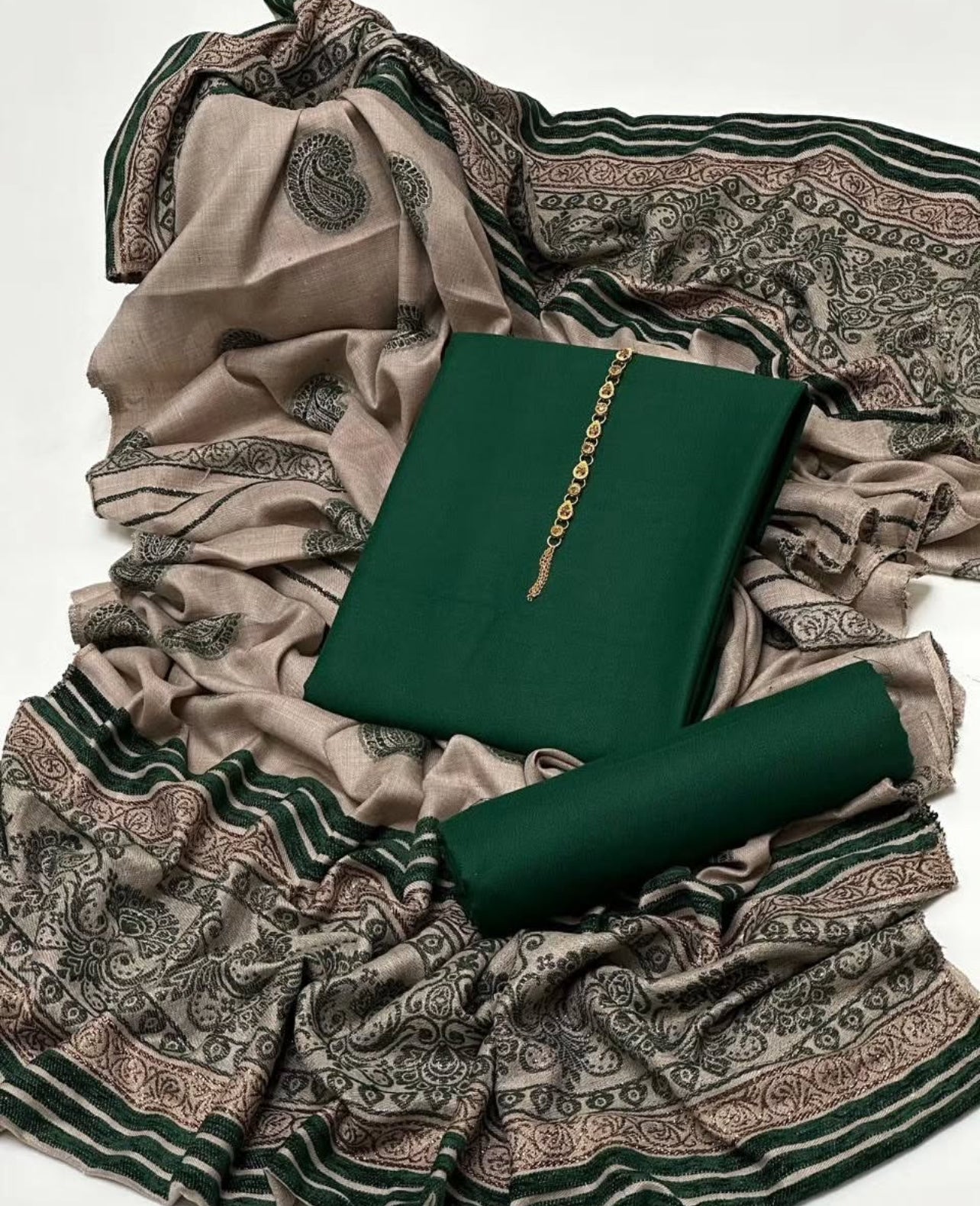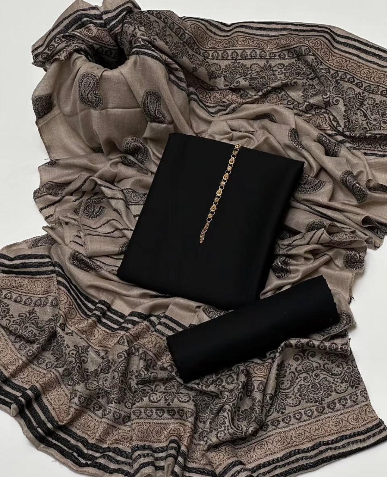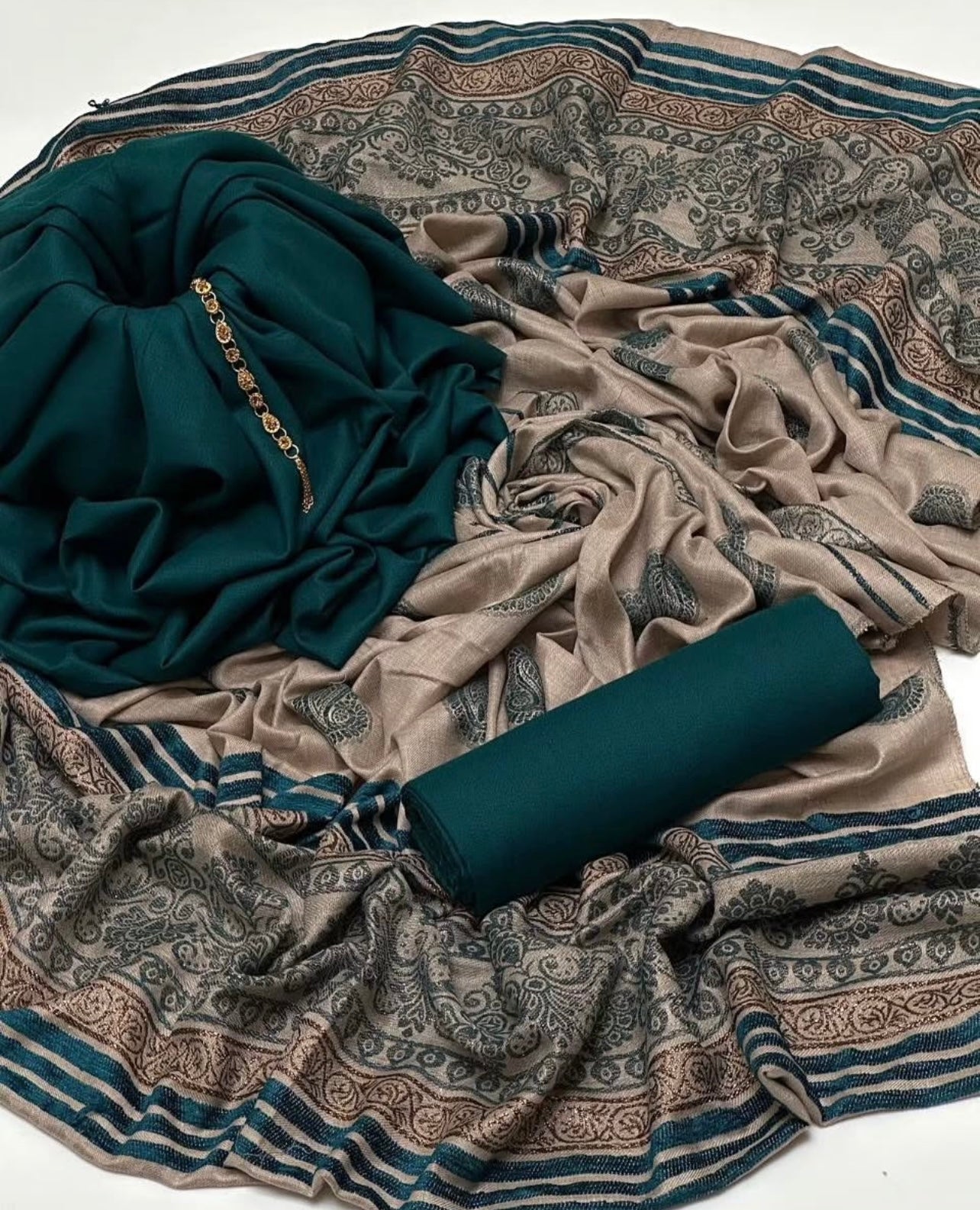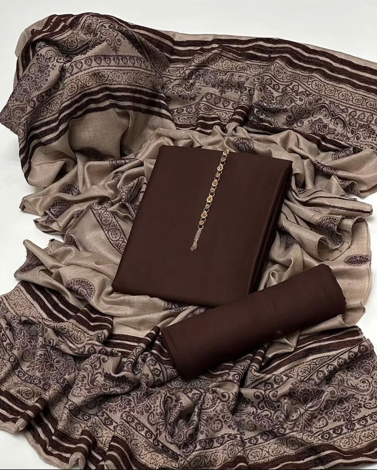 Plain Soft Marina Shirt & Trouser Along With Pashmina Wool
