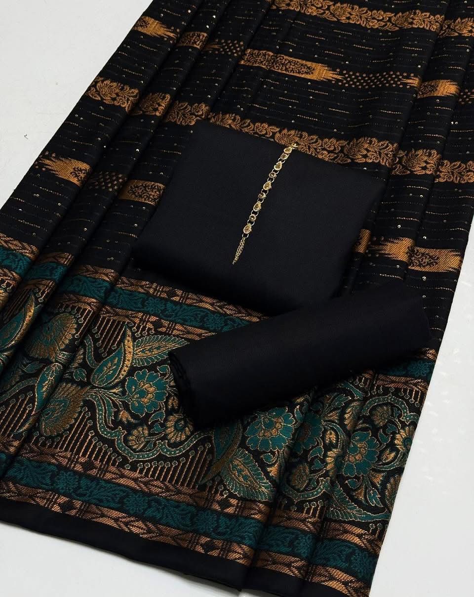 Beautiful & Elegant Style Plain Dhanak Marina Shirt & Trouser With Wool Jacquard Border Sequence Work Shawl