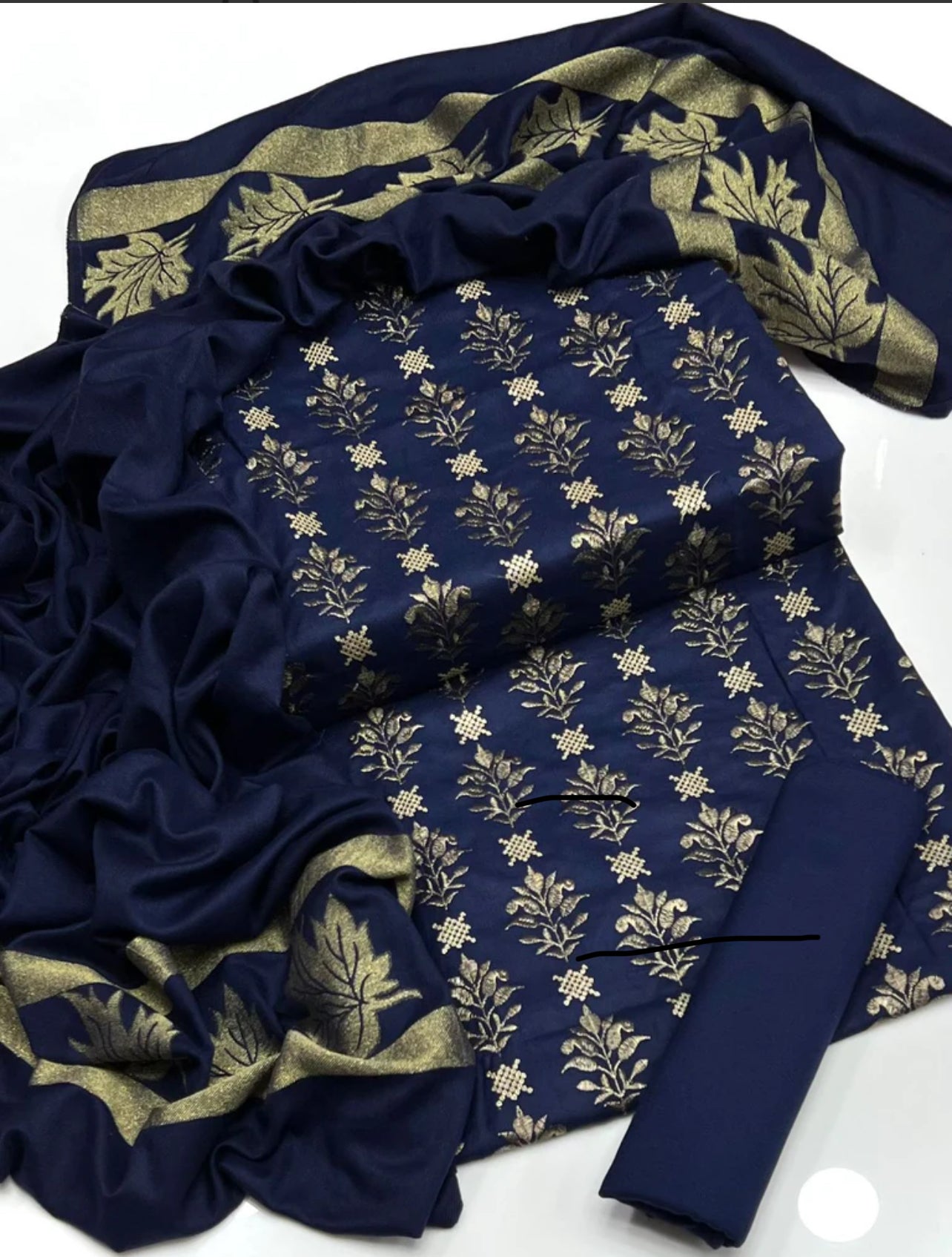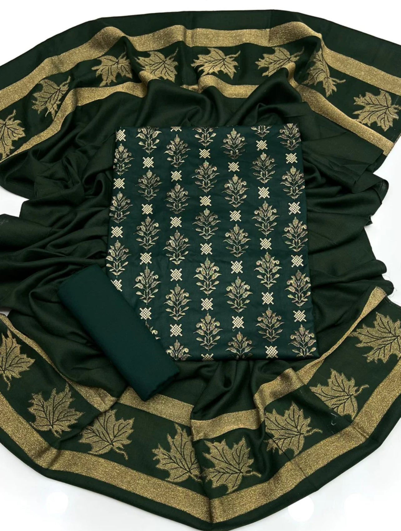 Embroided Dhanak Shirt Zari Patta Work Pashmina Wool Shawl Plain Dhanak Trouser 3 pc dress 👗