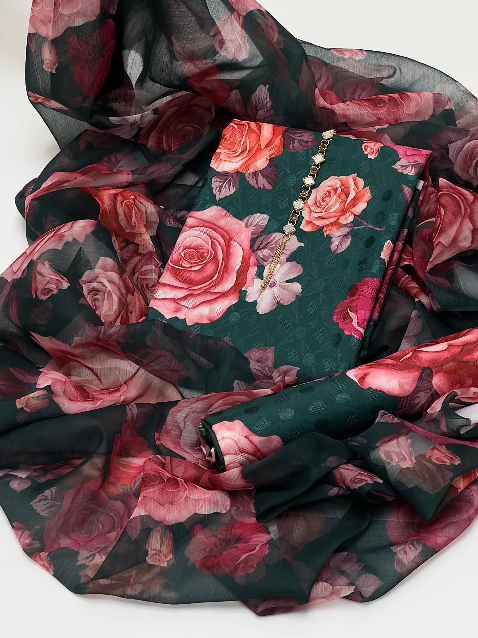 Premium Quality *SELF* Swiss Lawn Jacquard Fabric Digital Print *Shirt & Trouser*