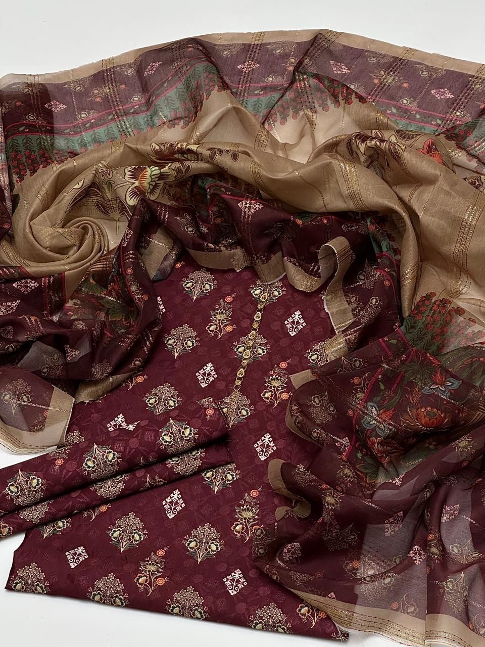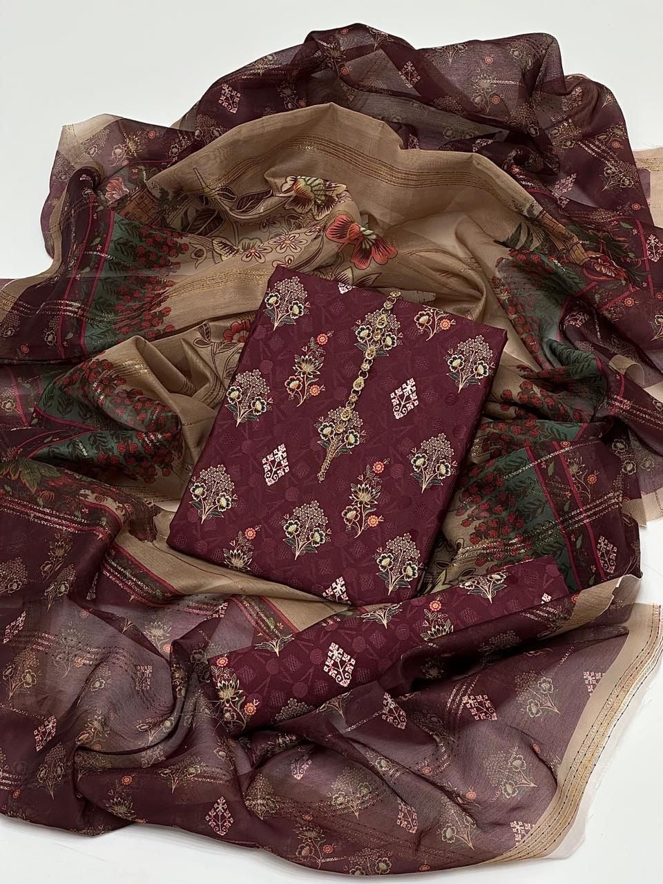 Premium Quality *SELF* Swiss Lawn Jacquard Fabric Digital Print *Shirt & Trouser* Chiffon Digital Print *Dupatta* 3Pc Dress 👗