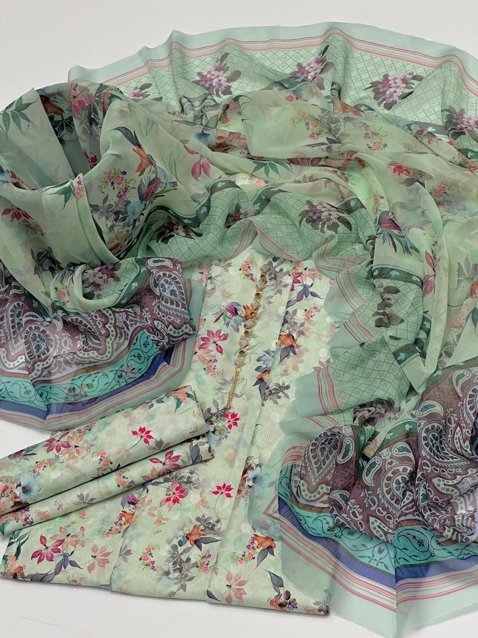 Premium Quality *SELF* Swiss Lawn Jacquard Fabric Digital Print *Shirt & Trouser*