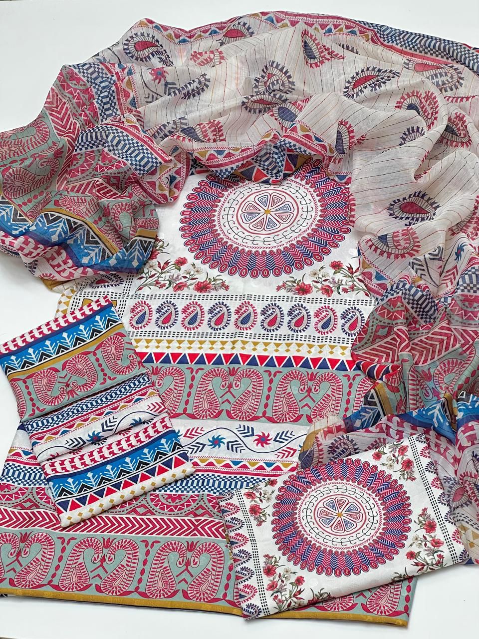 Premium Quality *SELF* Swiss Lawn Jacquard Fabric Digital Print *Shirt & Trouser*