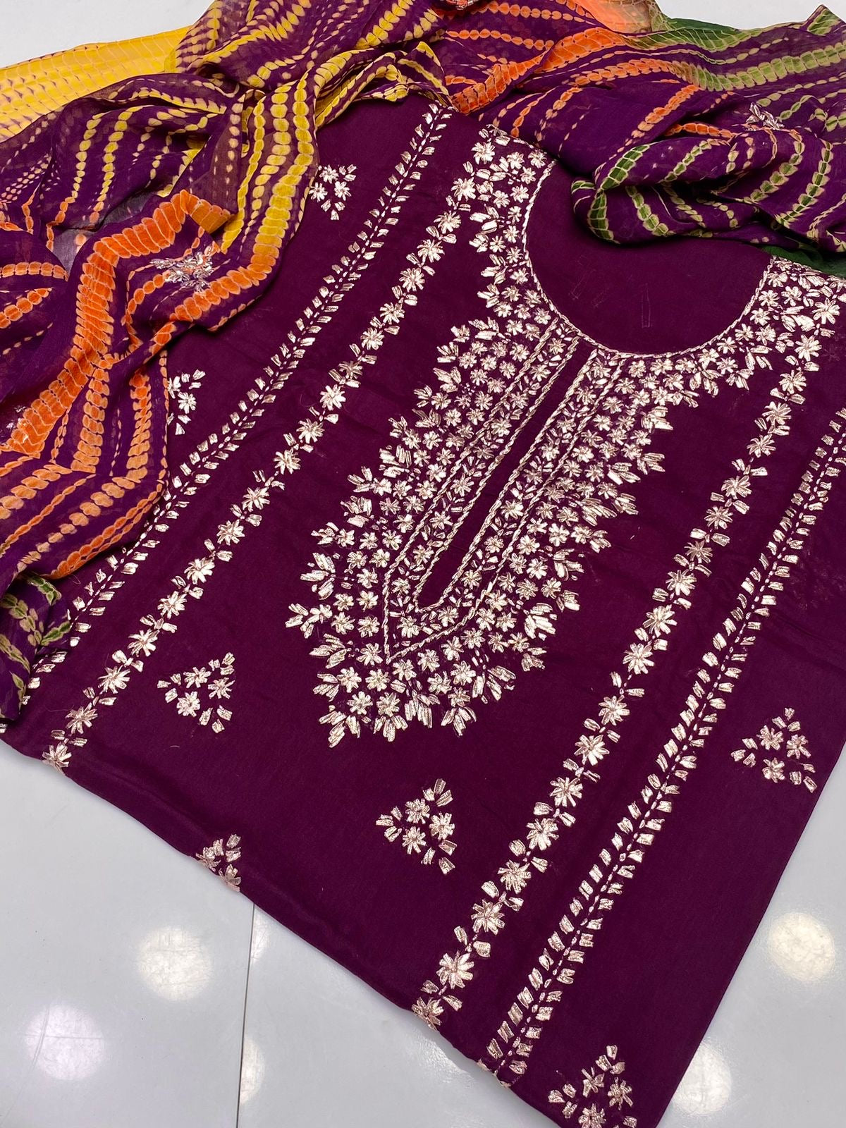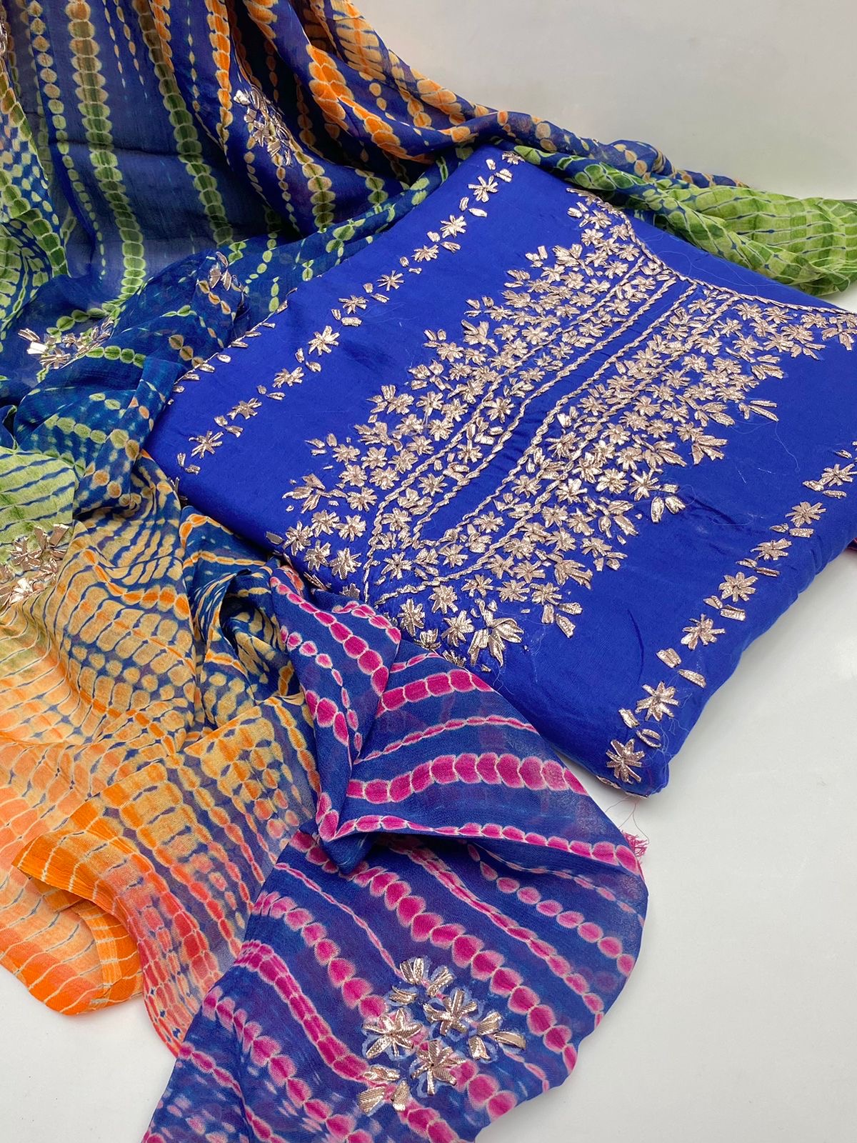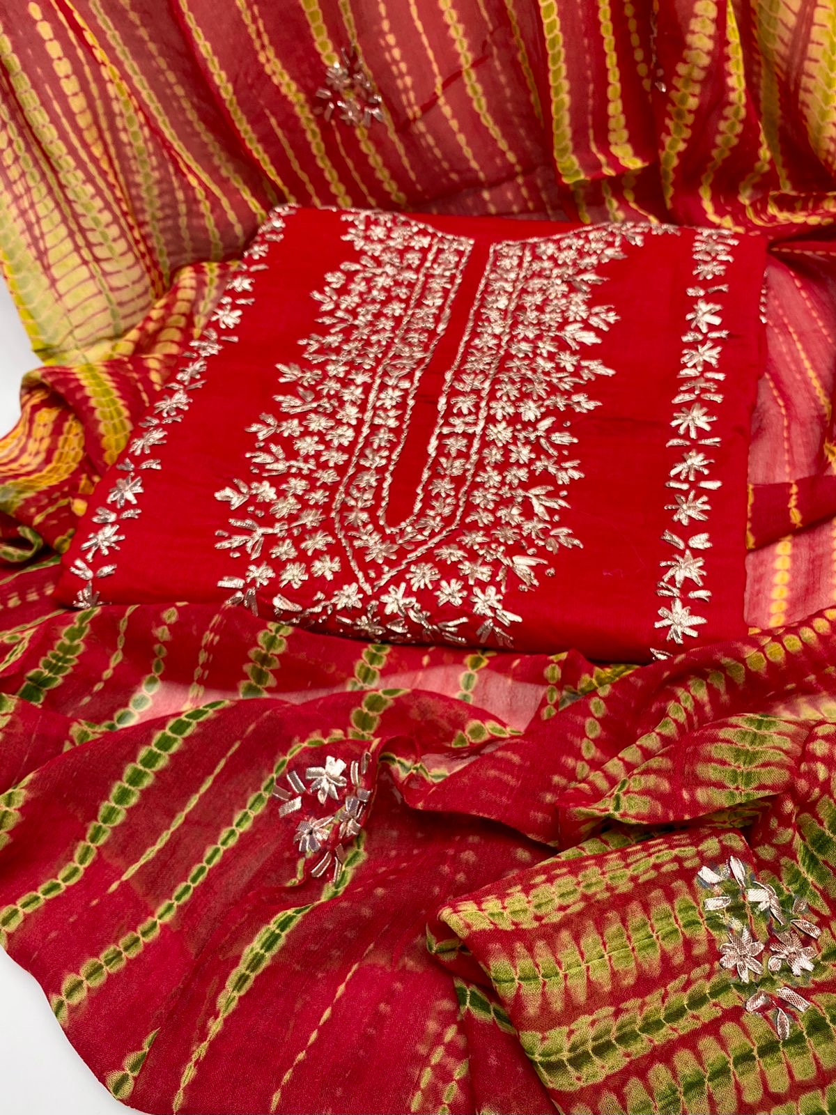 Handmade Gotta work on Lawn embroidered shirt with embroidered shiffon tie nd dye dupatta along