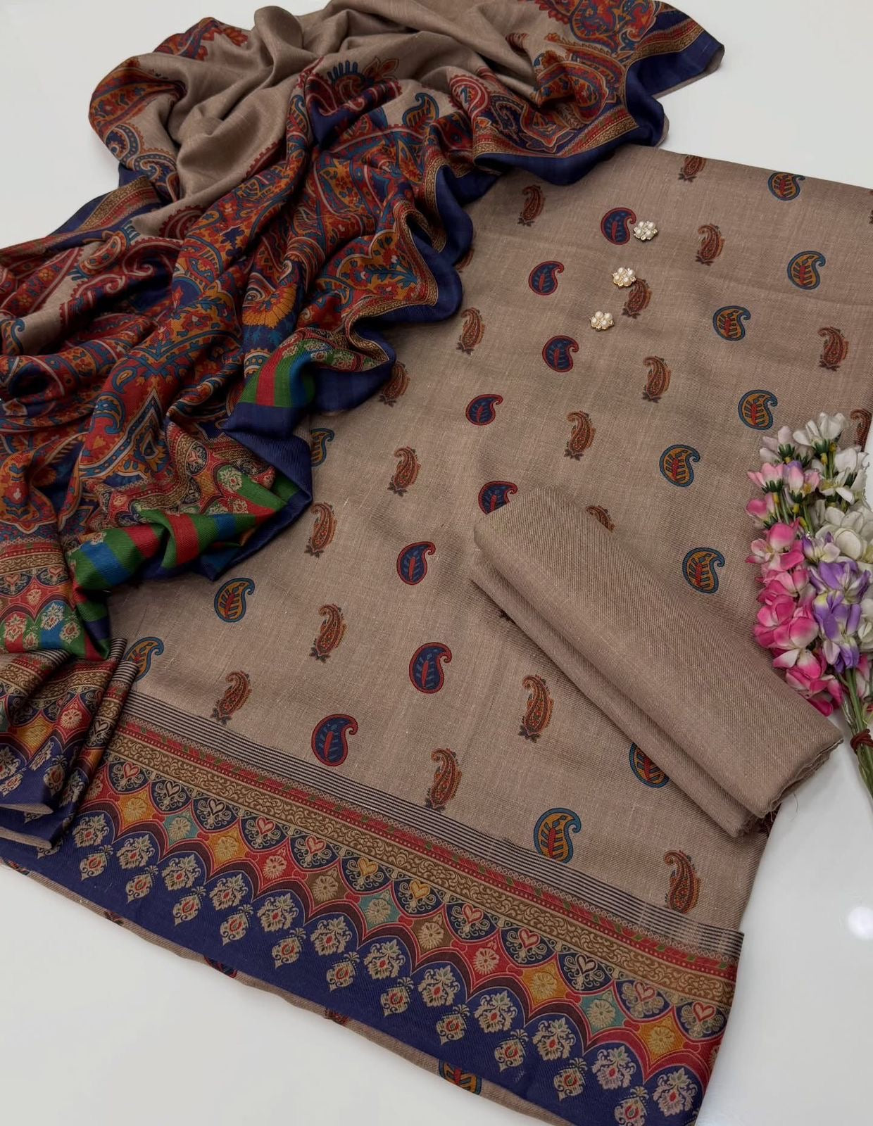 Indian paahmina wool 72 Grade kalamkari print 4 side print Shawl (2.5metter)