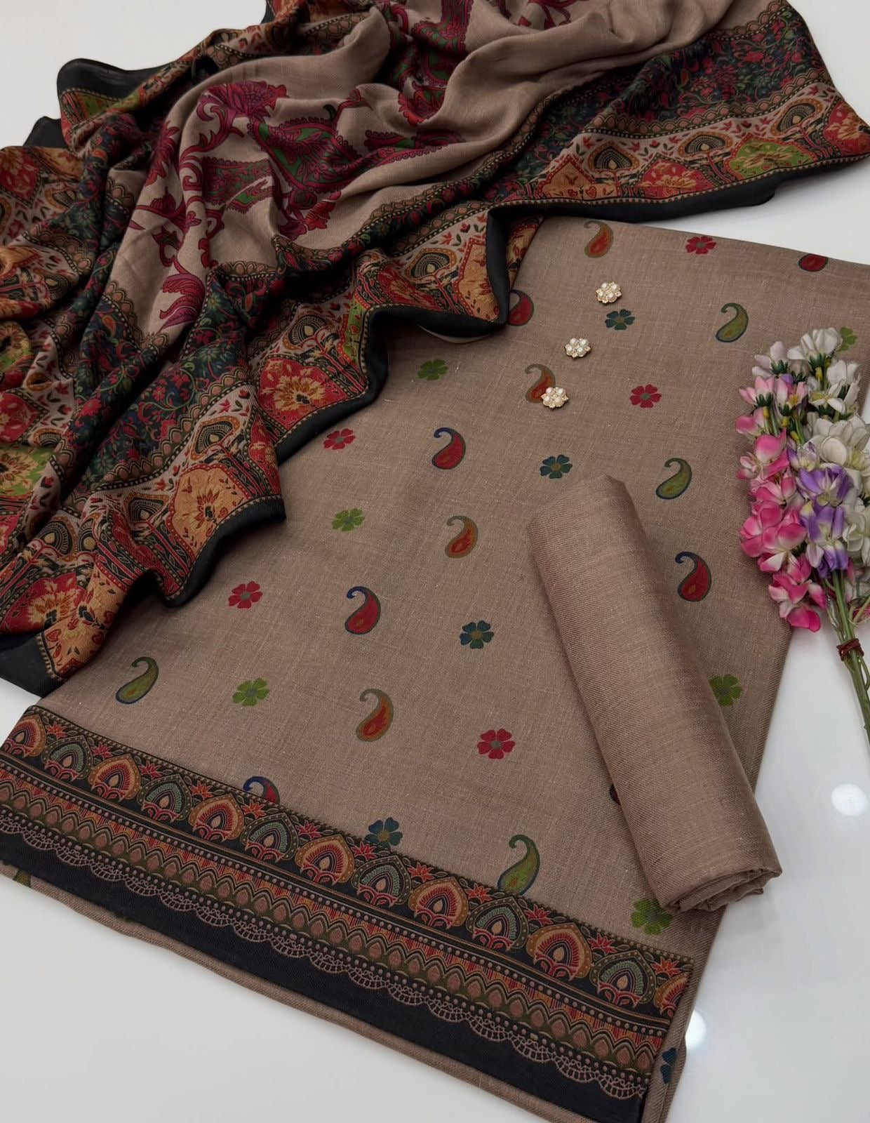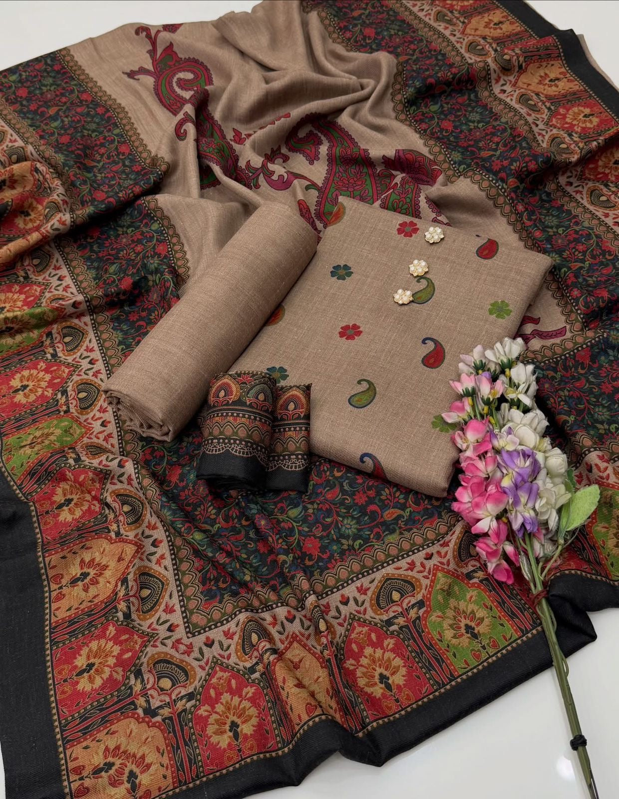 3 Pc Unstitched Kalamkari Pashmina Wool