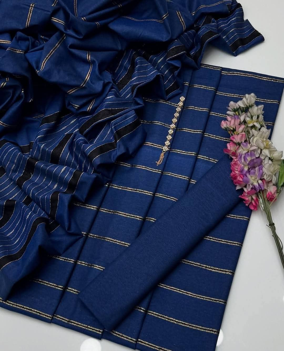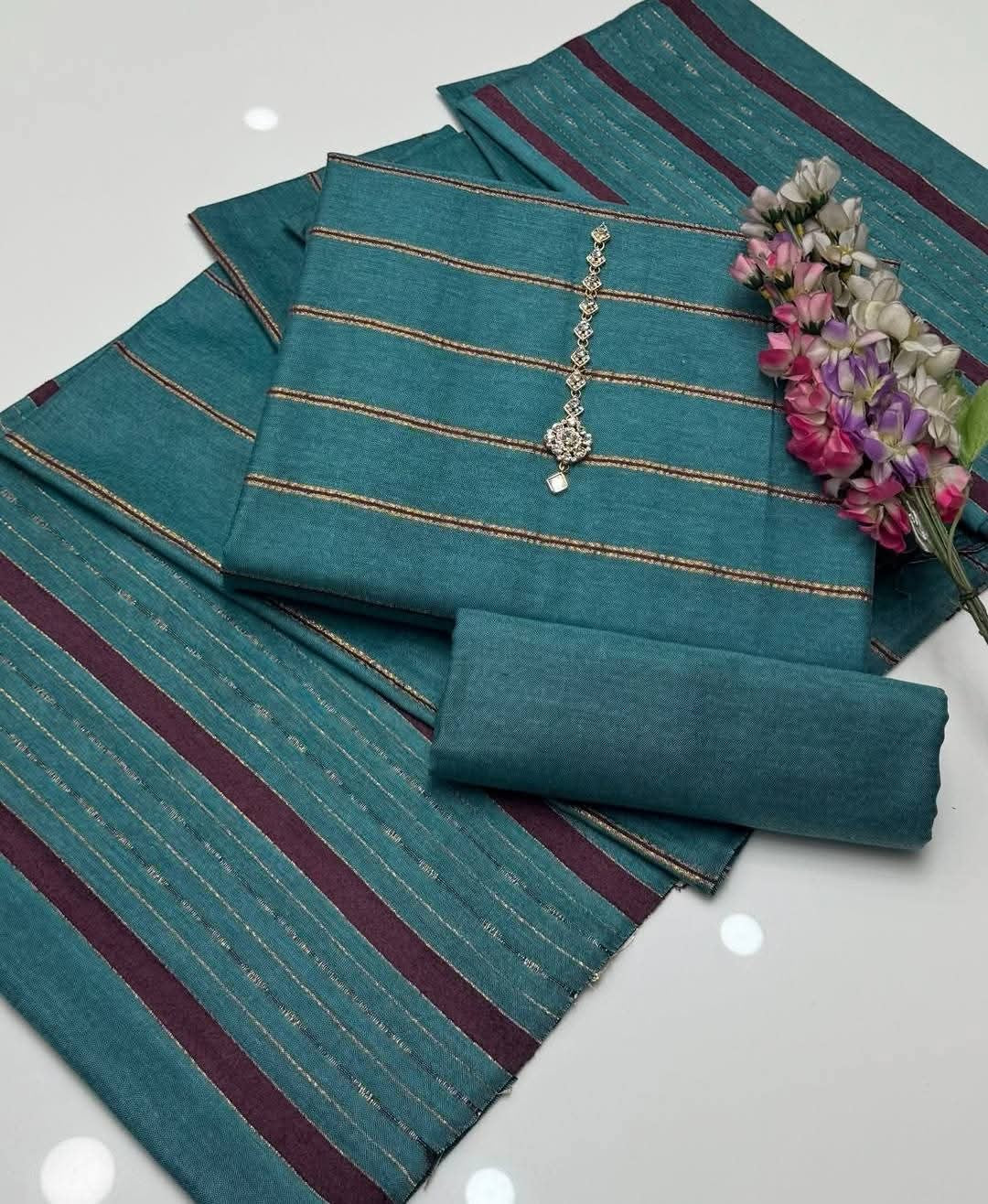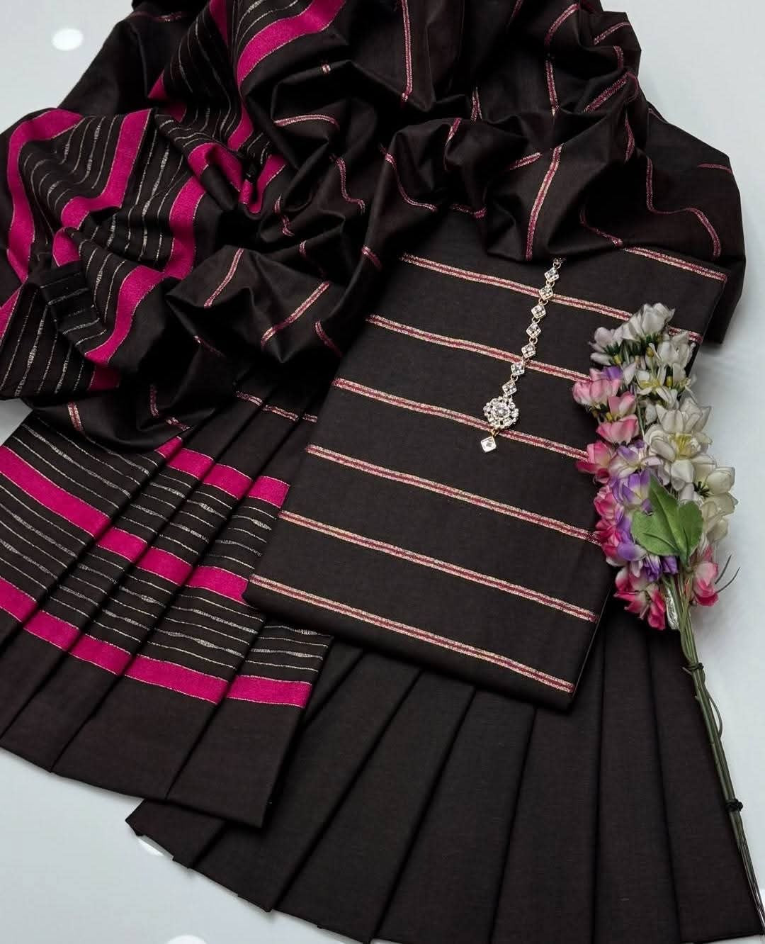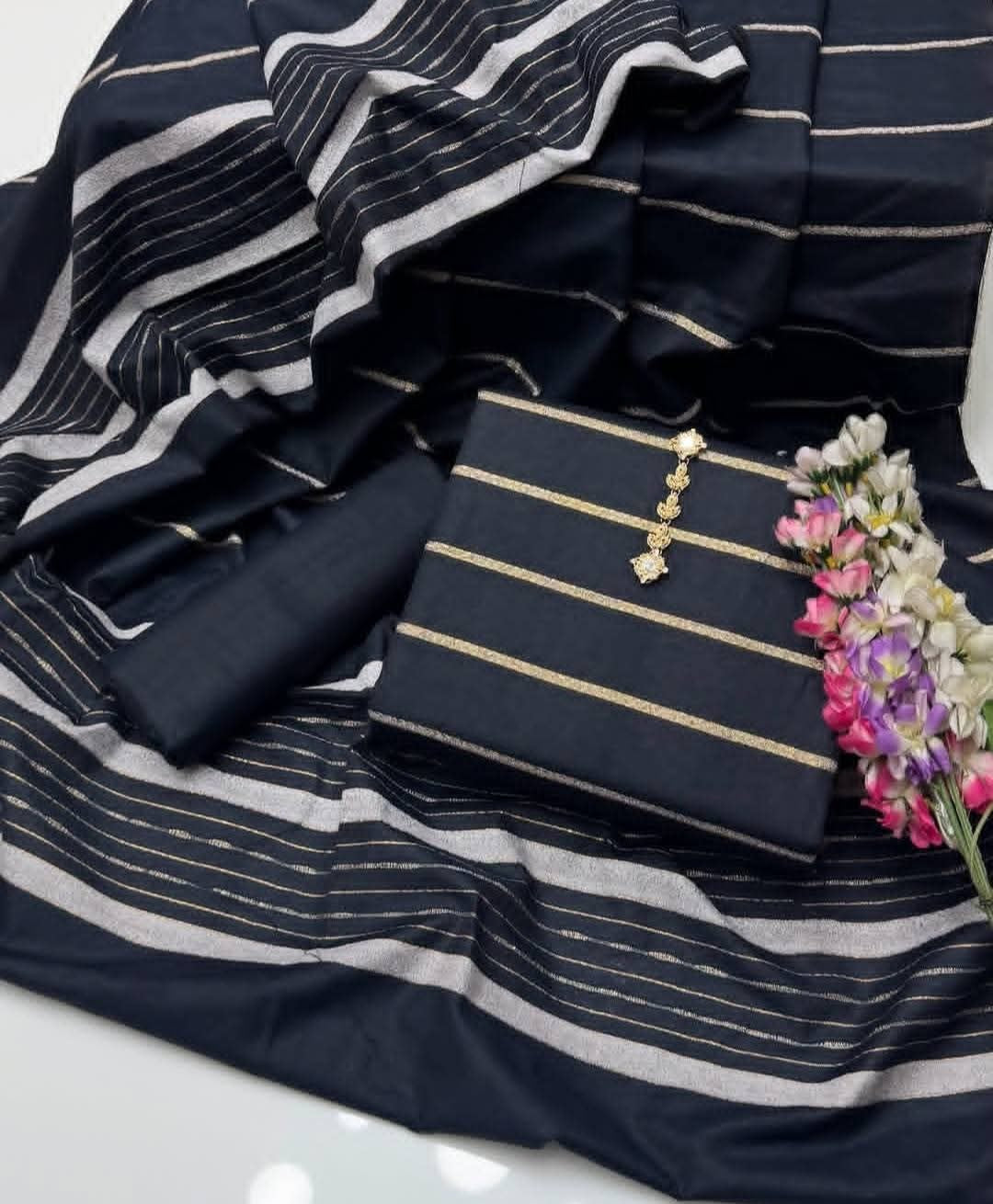 Embrace The Elegance of Mid Season Khaadi Khaddar Velvet Border Shirt, Plain Trouser & Paired with a luxurious Jacquard Velvet Border Khaadi Khadar Shawl 3 Pc Dress 👗