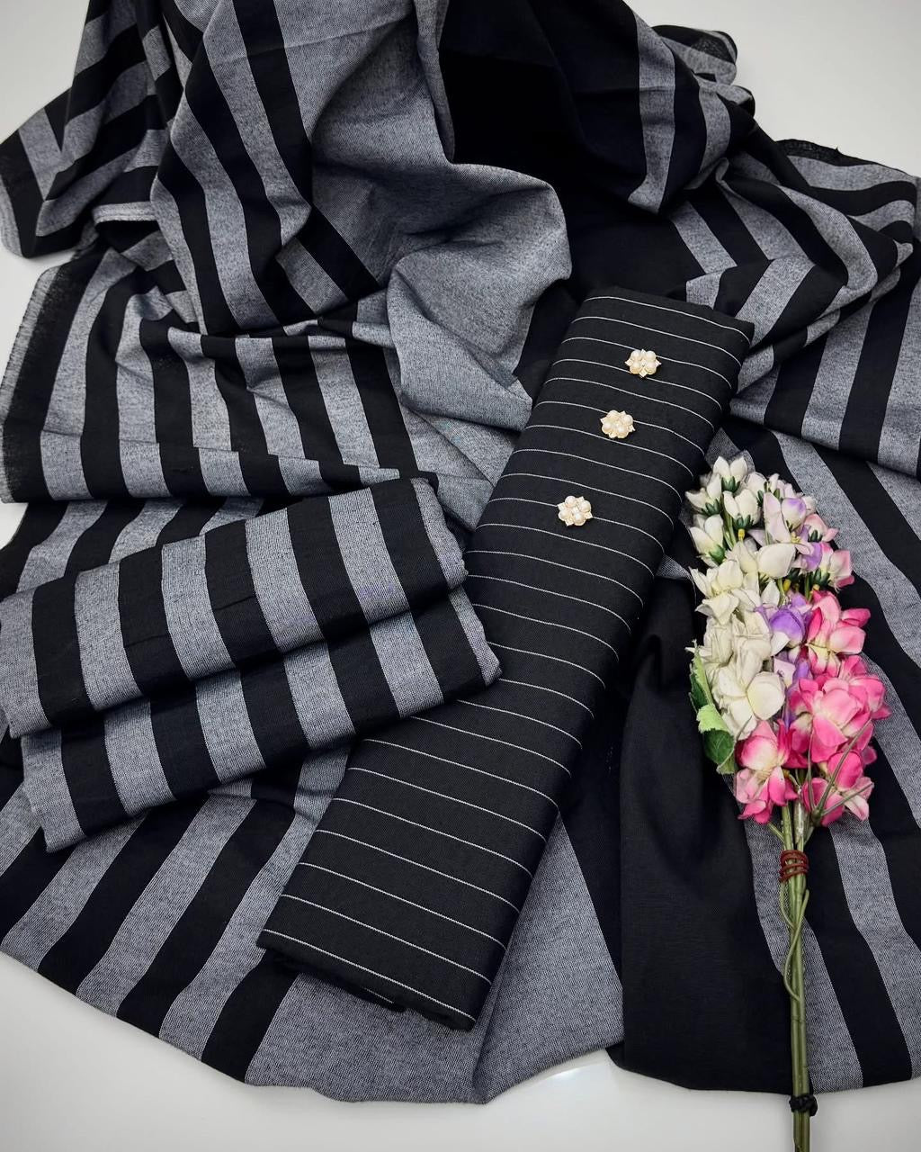 Embrace The Elegance of Multani Khaadi Marina Lining Shirt & Trouser & Paired with a Lining Jacquard Marina Khaadi Shawl 3 Pc 👗Â
