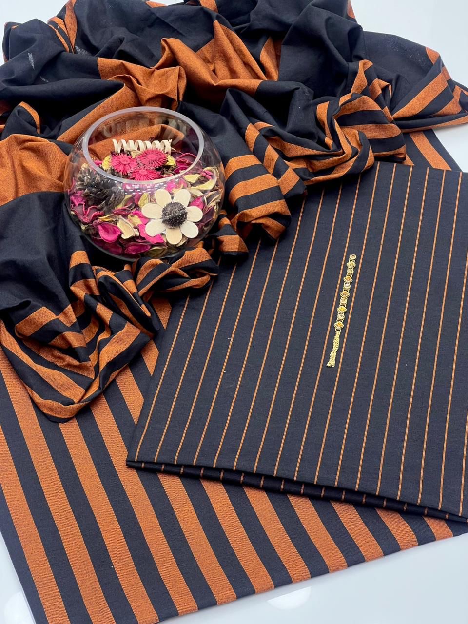 Fabric : Khaddi Winter ❄️ stuff plan shirt with lining trouser along with 2 border lining style dupatta 3pcs Dress