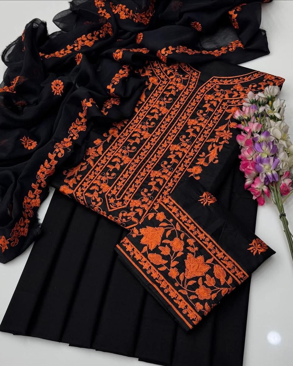 Lawn Cotton Embroidered Shirt With Chiffon Embroidered Dupatta And Lawn Cotton Embroidered Trouser