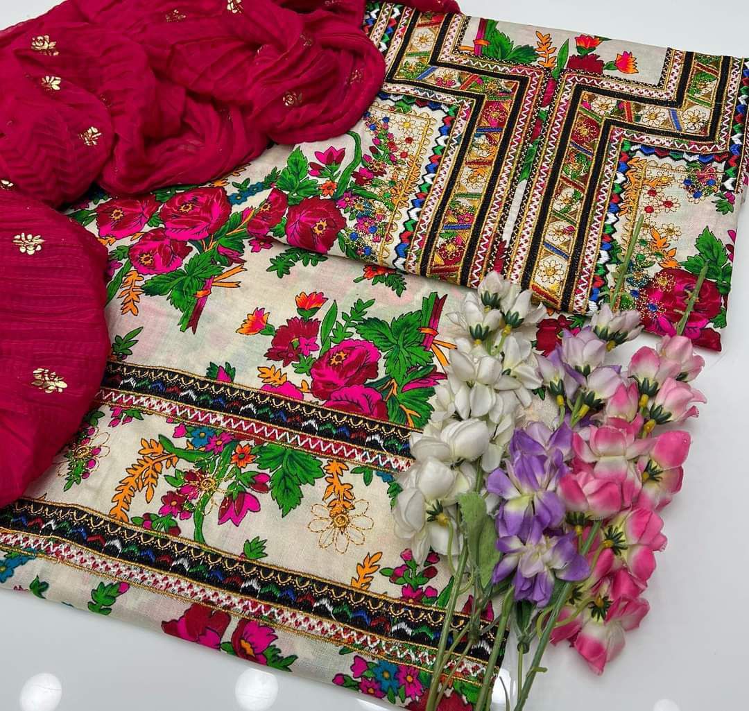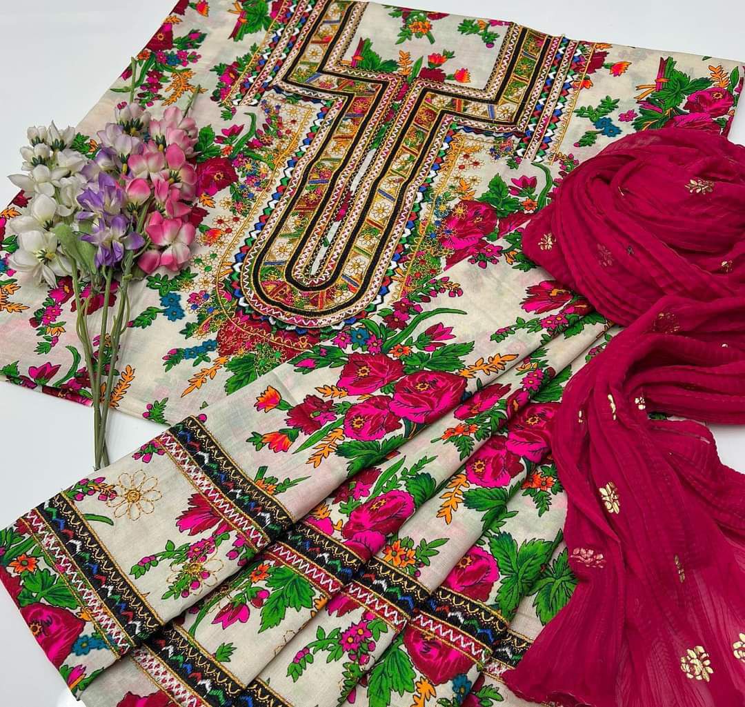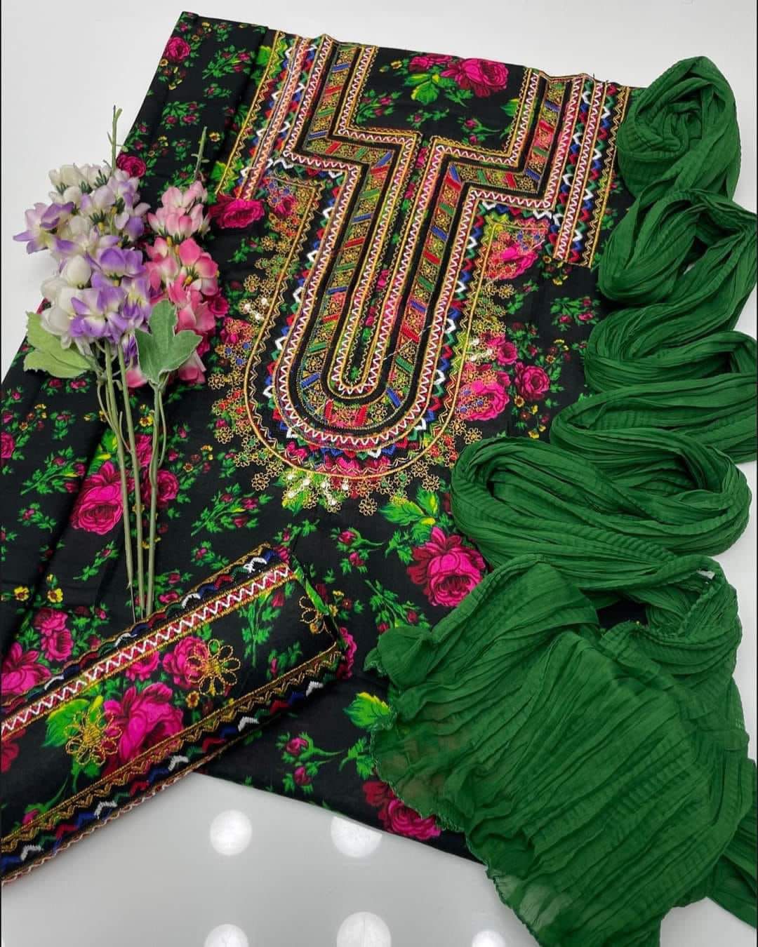 Trouser Along With crush shafoon galider duppata 3 Pcs Dress 👗.