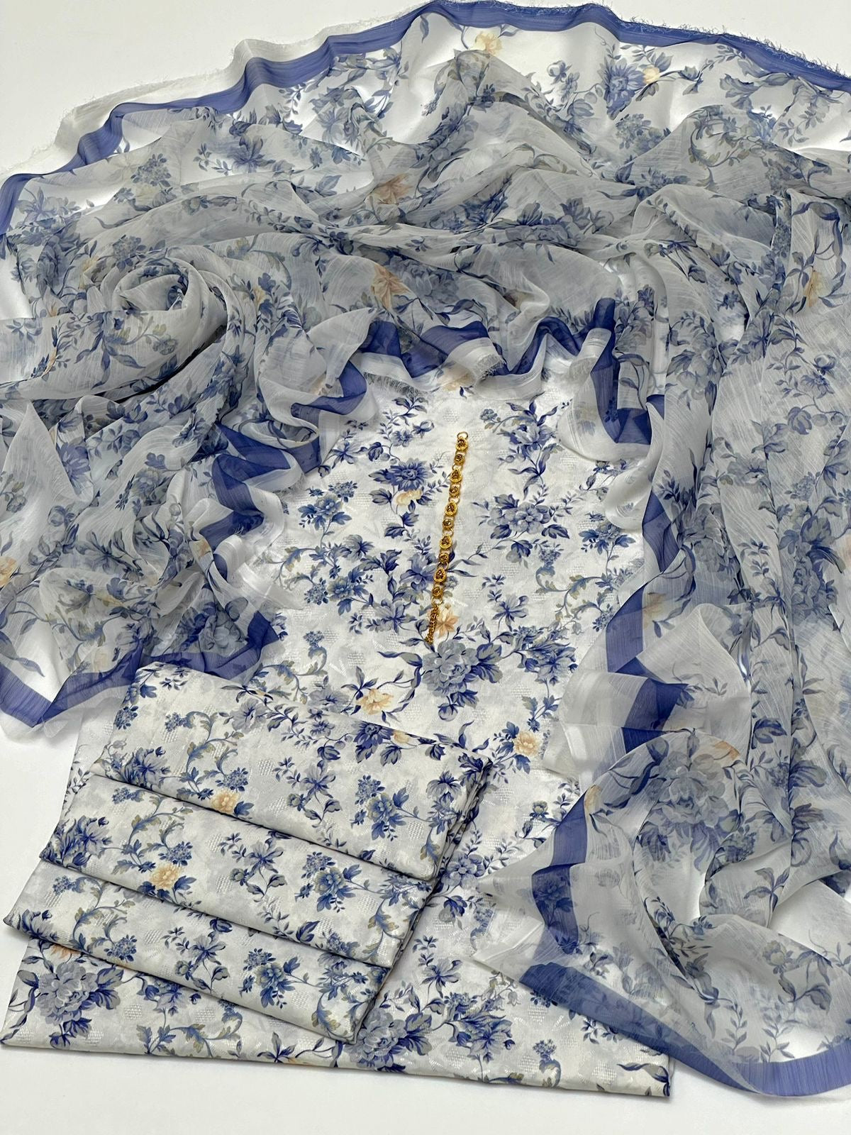 Monar Fabric Digital Print Shirt & Trouser Along With Digital Print Chiffon & Monar Dupatta 3 Pcs Dress