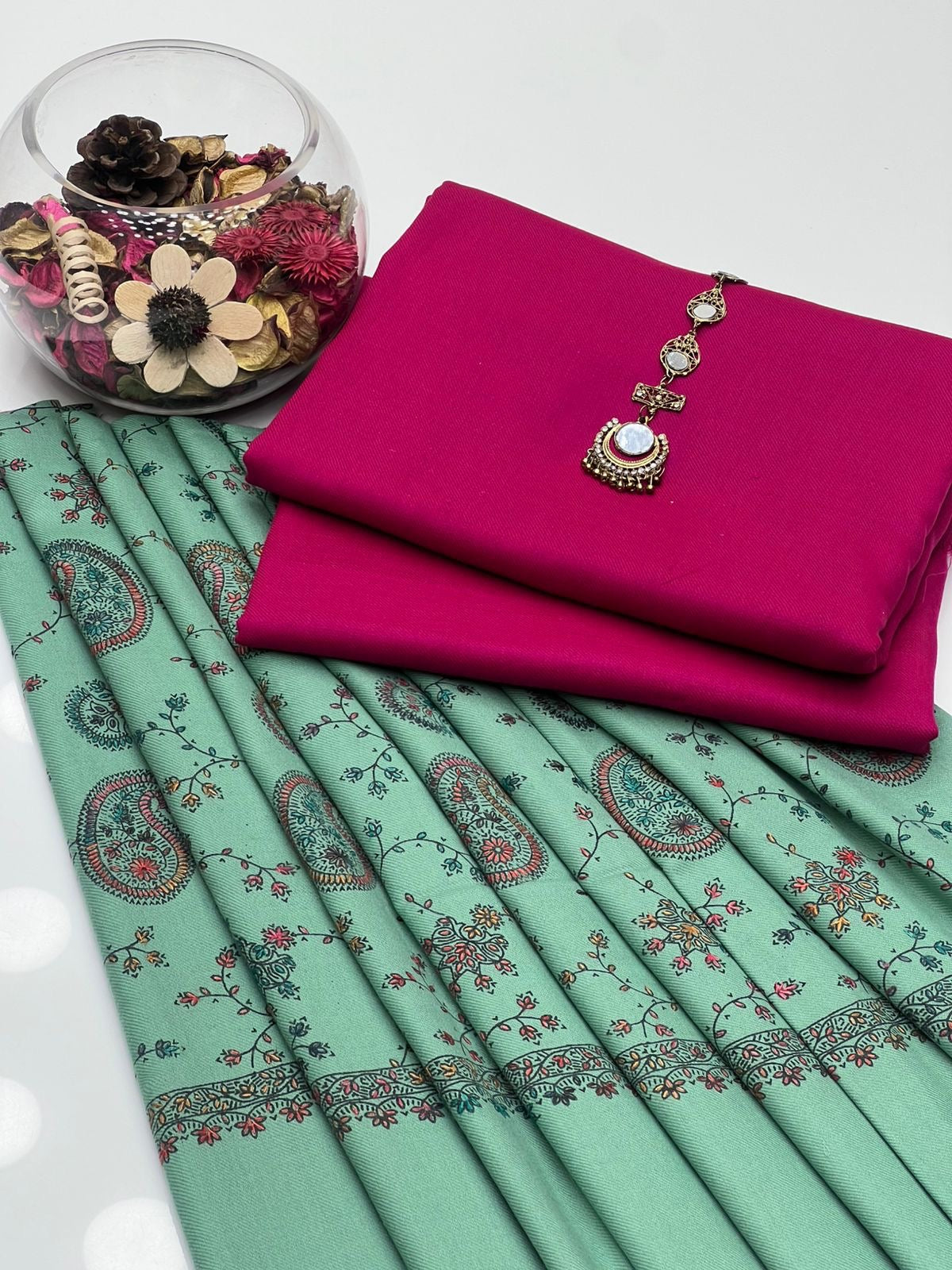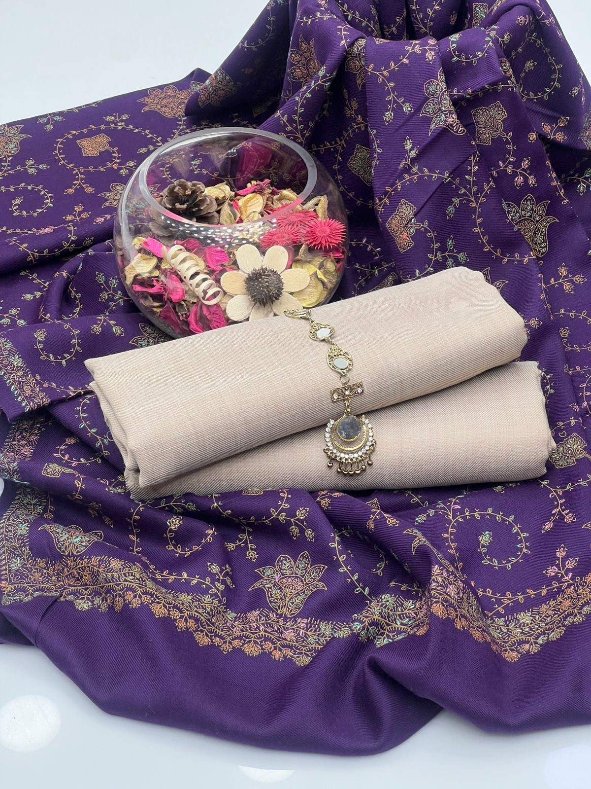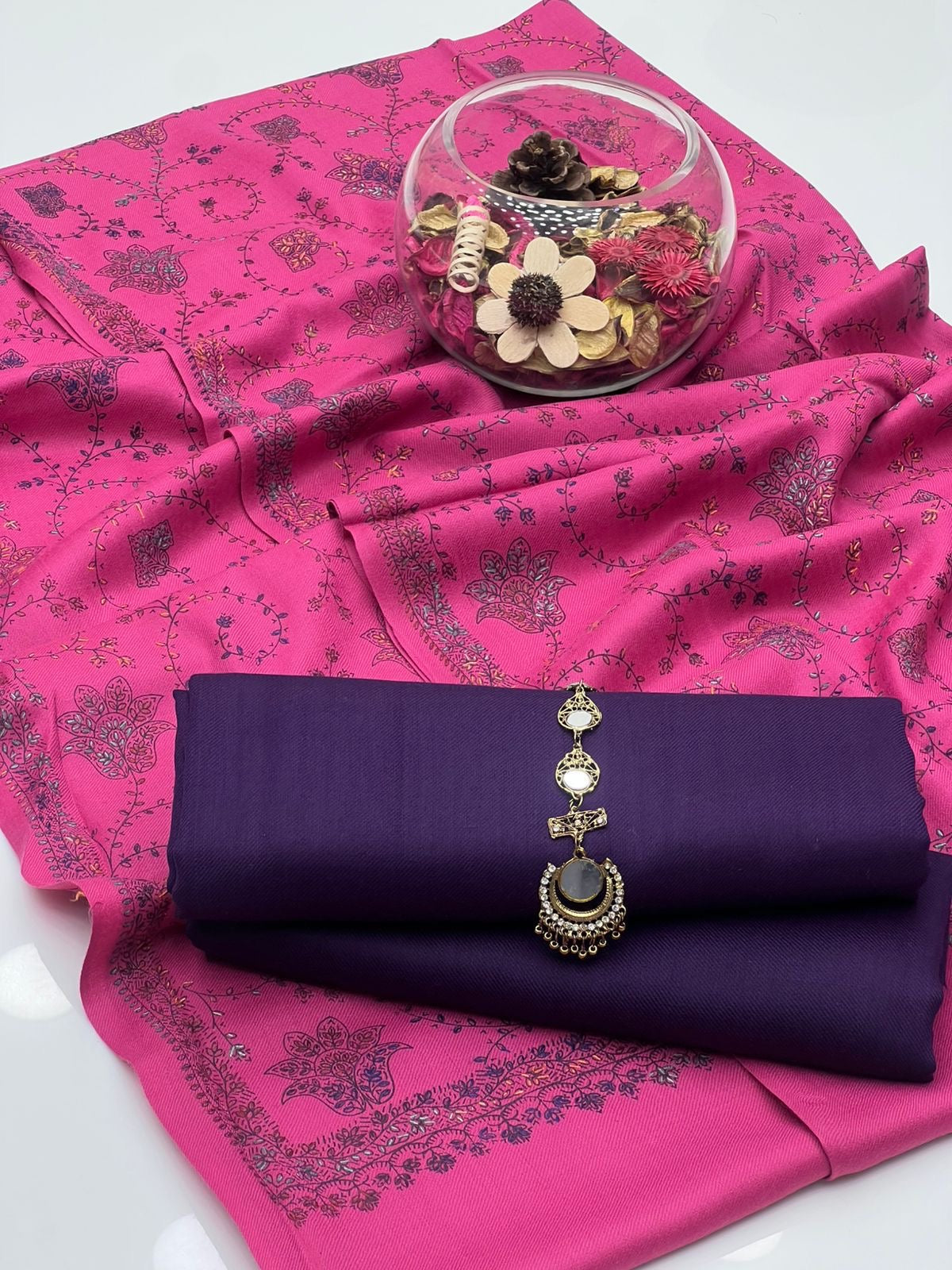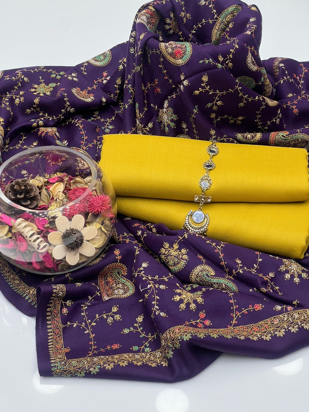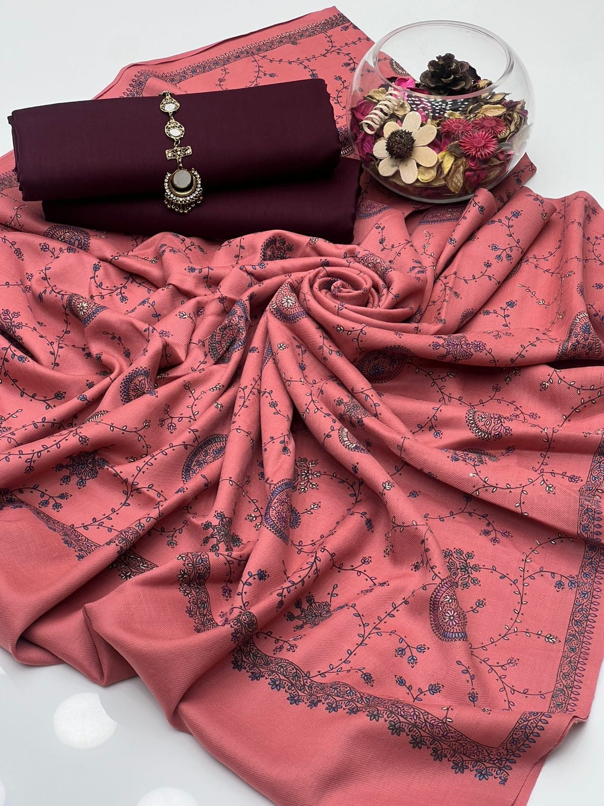 Pashmina Wool Shirt & Trouser Including Neckline Along With Pashmina Wool Kashmiri 4 Side Embroided Border Shawl