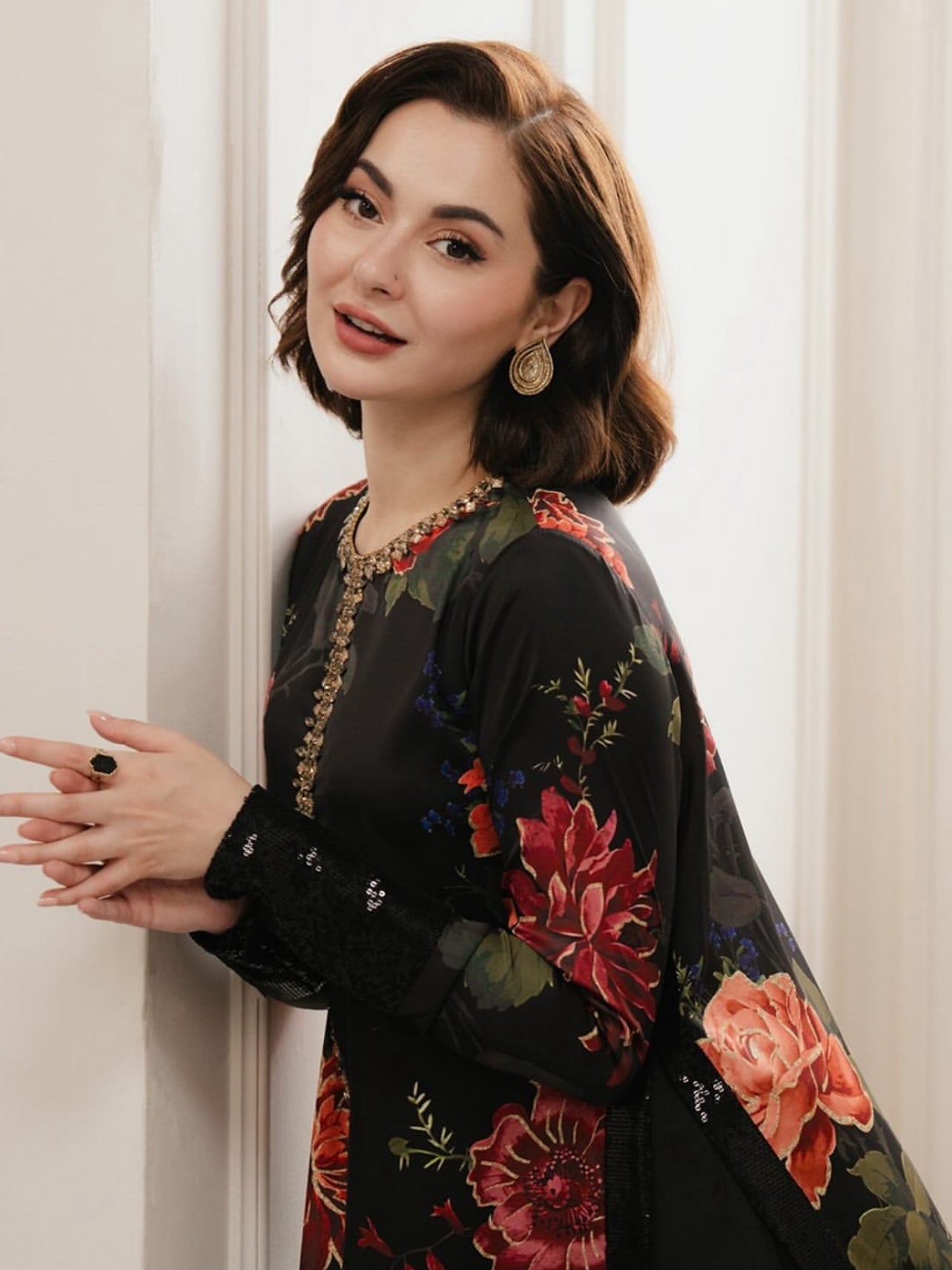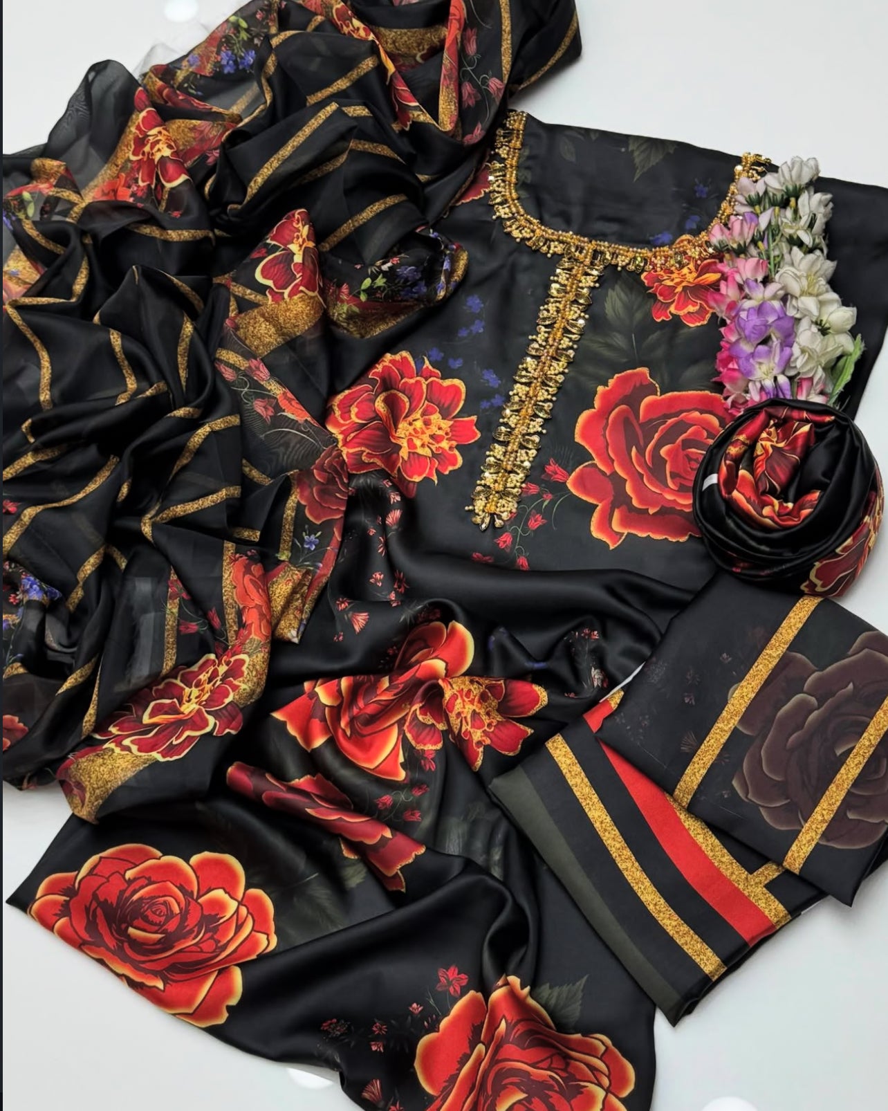 Shamoz Silk Fancy Neck Work & Digital Print Shirt With Digital Print Shamoze Silk Trouser Along With Silk Digital Print Dupatta 3Pcs Dress