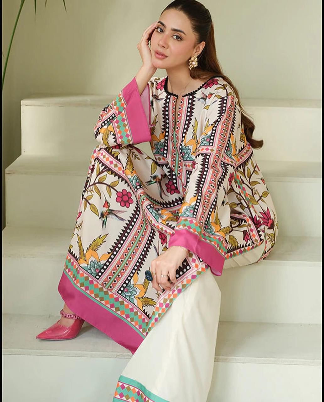 Shamoze Silk Digital Print Shirt, Shamoze Silk Digital Print Trouser Along With Silk Digital Print Dupatta 3 Pcs Dress 👗.