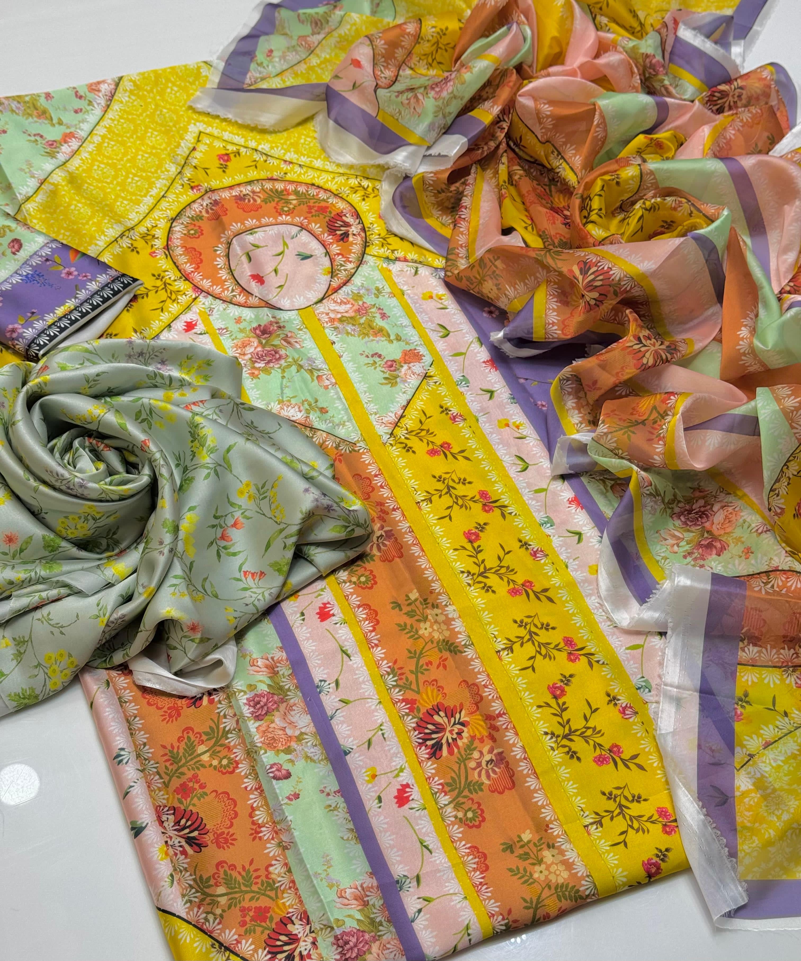 Shamoze Silk Digital Print Shirt, Shamoze Silk Digital Print Trouser Along With Silk Digital Print Dupatta 3 Pcs Dress 👗.