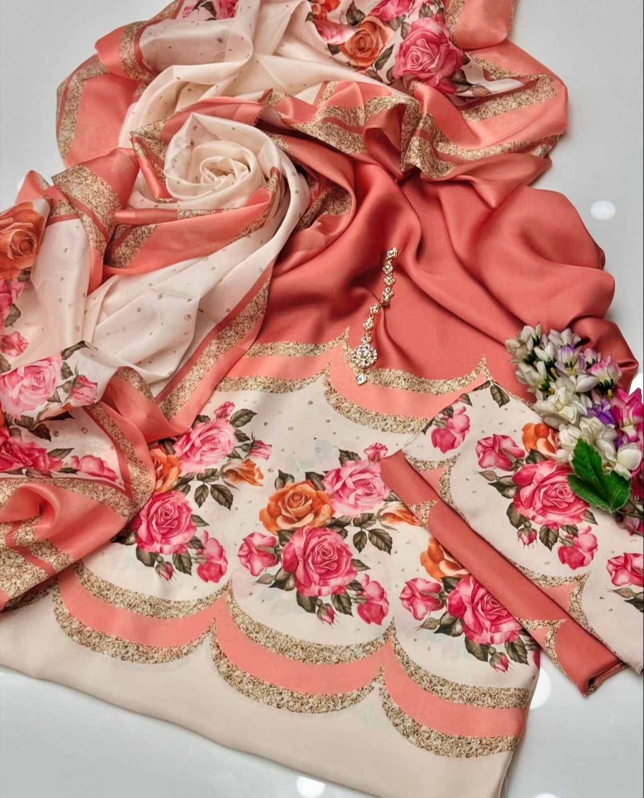 Shamoze Silk Digital Print Shirt, Shamoze Silk Digital Print Trouser Along With Silk Digital Print Dupatta 3 Pcs Dress