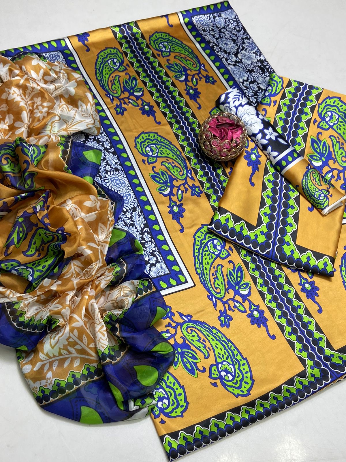 Shamoze Silk Digital Print Shirt, Shamoze Silk Digital Print Trouser Along With Silk Digital Print Dupatta 3 Pcs Dress 👗.