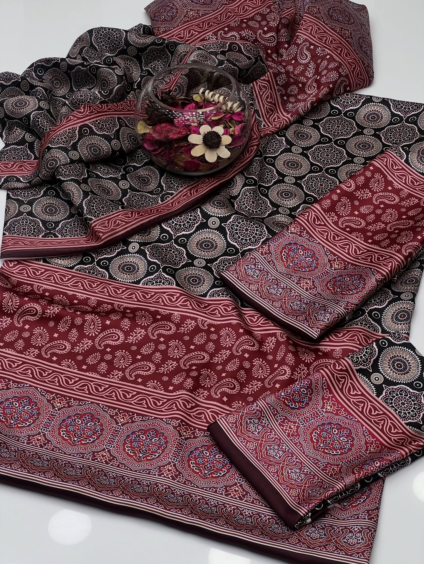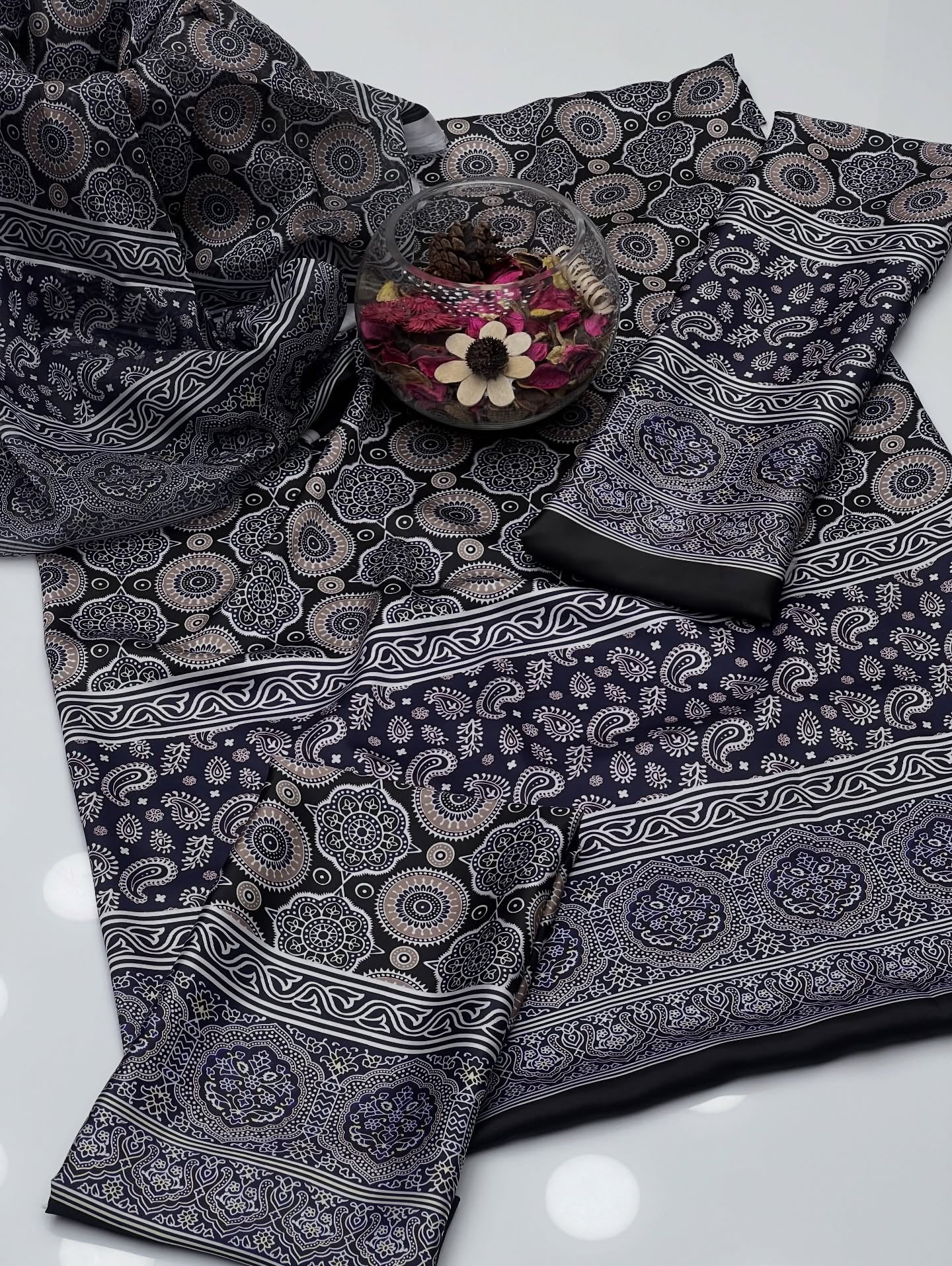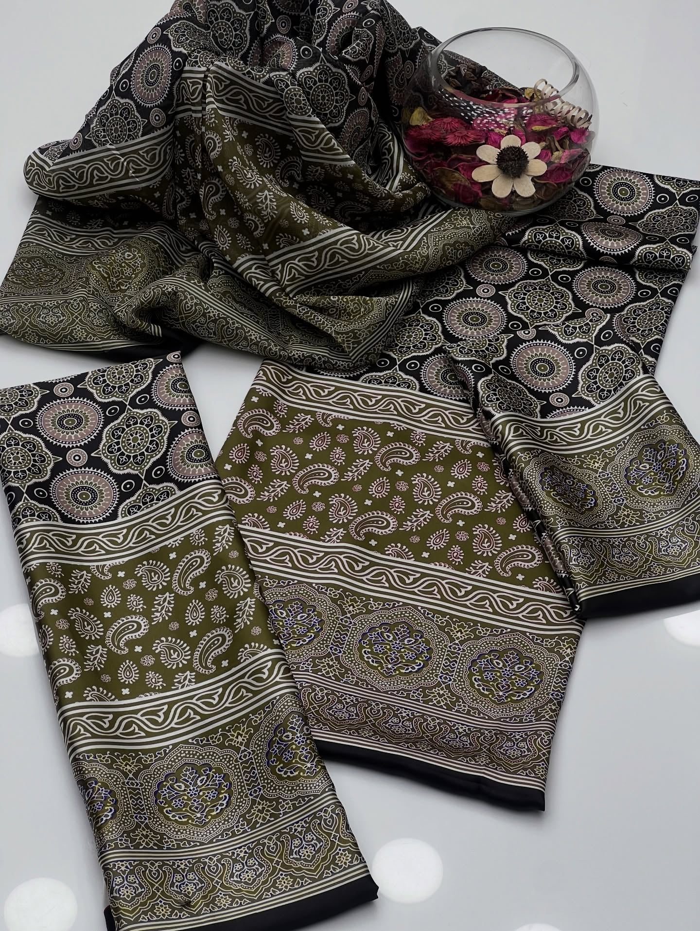 Shamoze Ajrak Digital Print Shirt Sleeves With Ajrak Shamoze Silk Trouser Along With Silk Ajrak Digital Print
